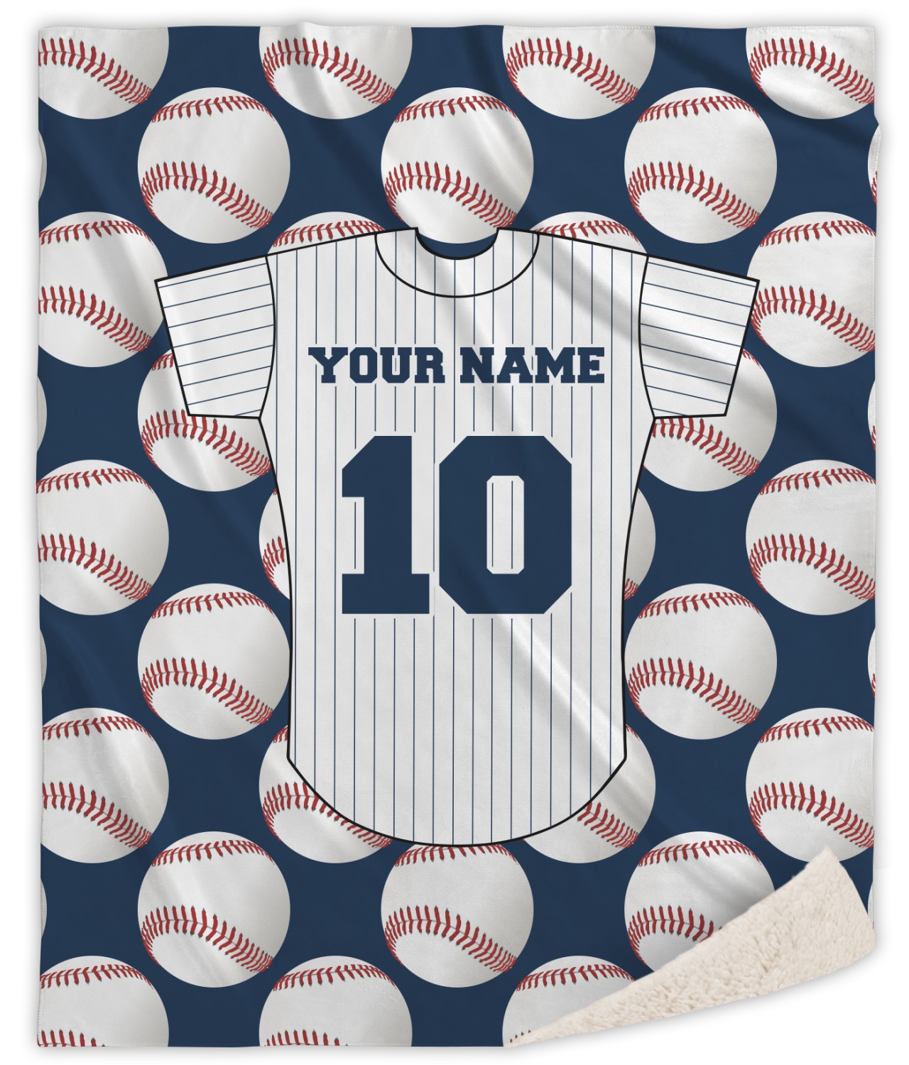 This design with baseballs in the background and a baseball jersey for name & number personalization will perfect for the baseball fanatic. The colors can all be changed - so you can change the colors to match your team color - the background color, the color of the jersey sleeves, the body and even the stripes' color can be changed!