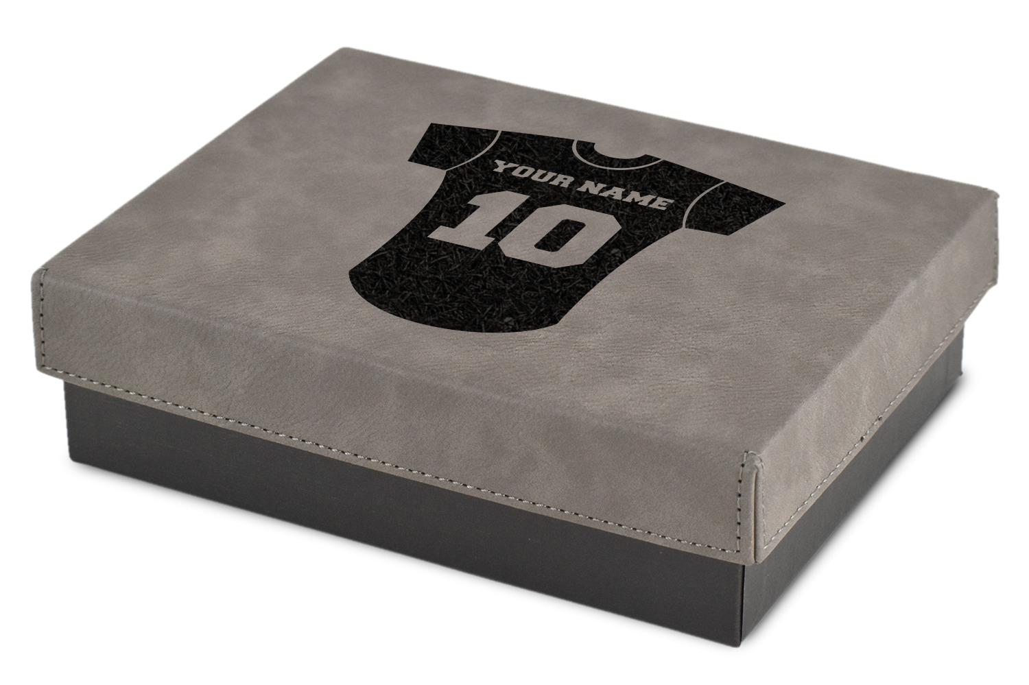 These gift boxes are available in 3 different sizes to accommodate various sized gifts. Available in gray as a neutral color for any occasion as well as to showcase your design boldly. Engraved with a laser this high quality paper board and faux leather gift box is unique and makes any gift stand out.