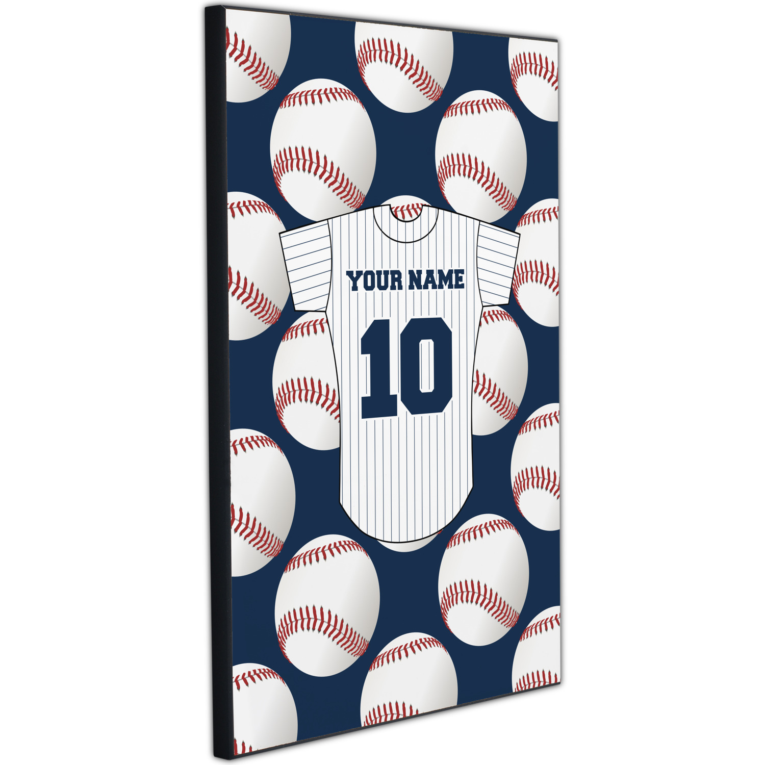 This design with baseballs in the background and a baseball jersey for name & number personalization will perfect for the baseball fanatic. The colors can all be changed - so you can change the colors to match your team color - the background color, the color of the jersey sleeves, the body and even the stripes' color can be changed!
