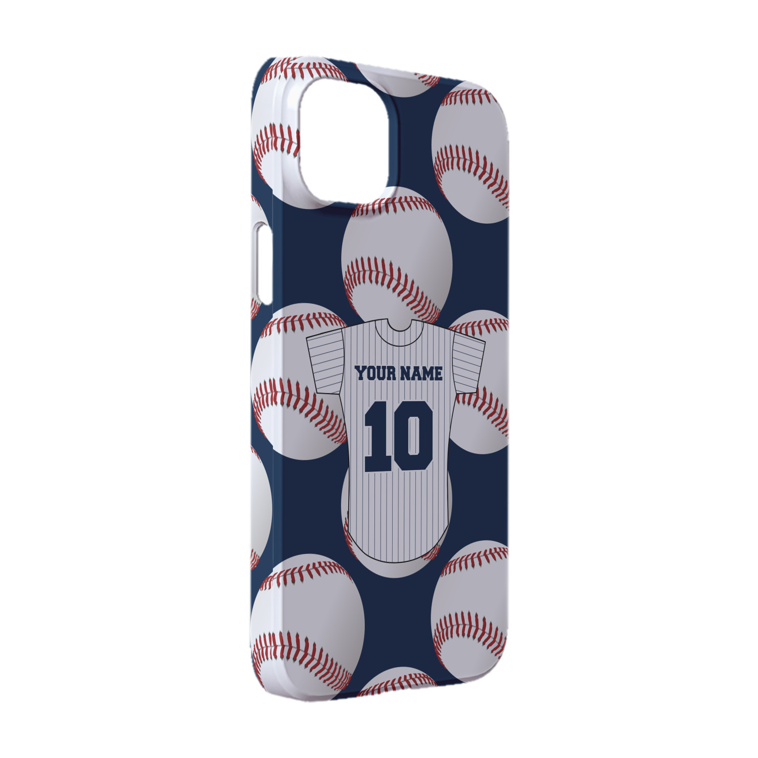 This design with baseballs in the background and a baseball jersey for name & number personalization will perfect for the baseball fanatic. The colors can all be changed - so you can change the colors to match your team color - the background color, the color of the jersey sleeves, the body and even the stripes' color can be changed!