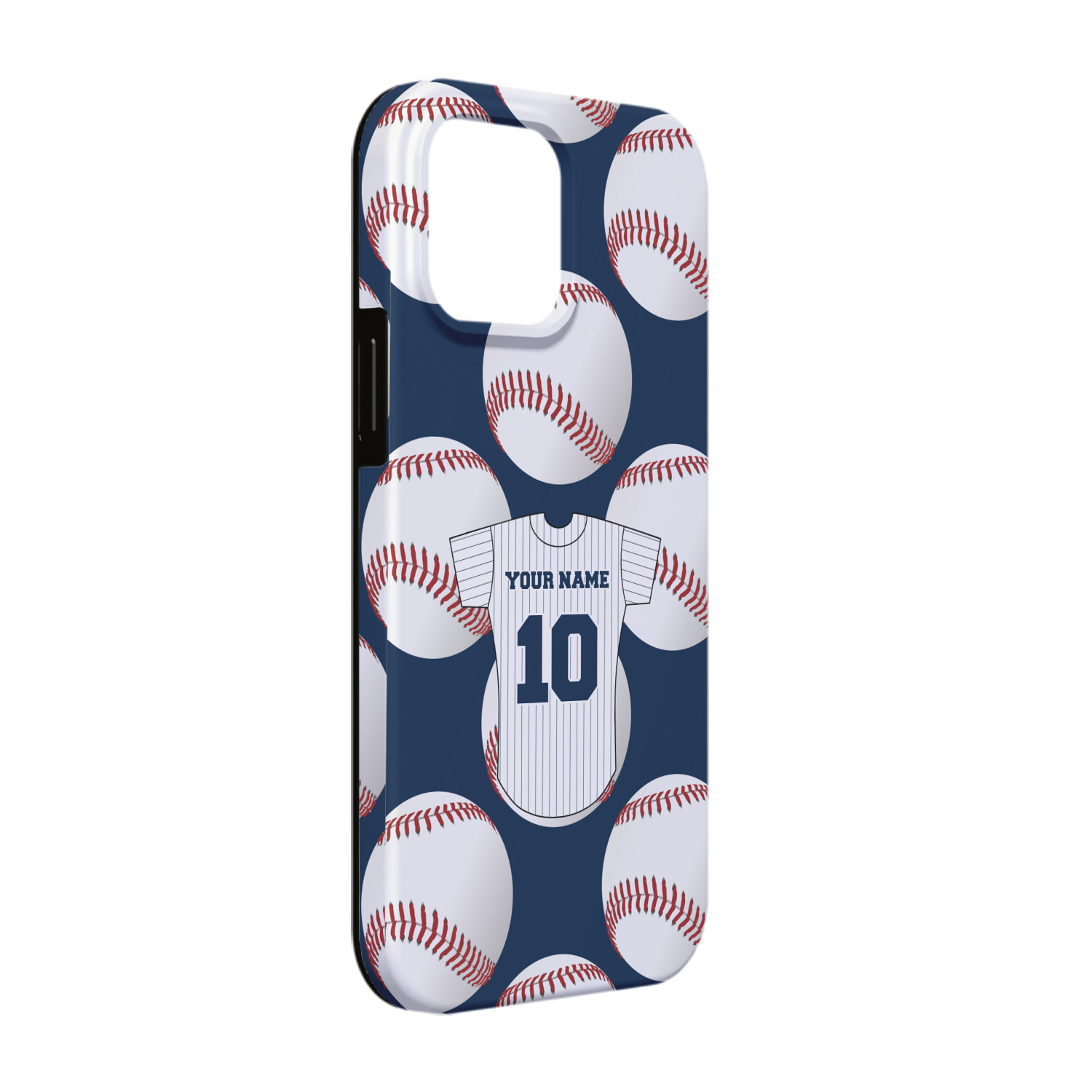 This design with baseballs in the background and a baseball jersey for name & number personalization will perfect for the baseball fanatic. The colors can all be changed - so you can change the colors to match your team color - the background color, the color of the jersey sleeves, the body and even the stripes' color can be changed!