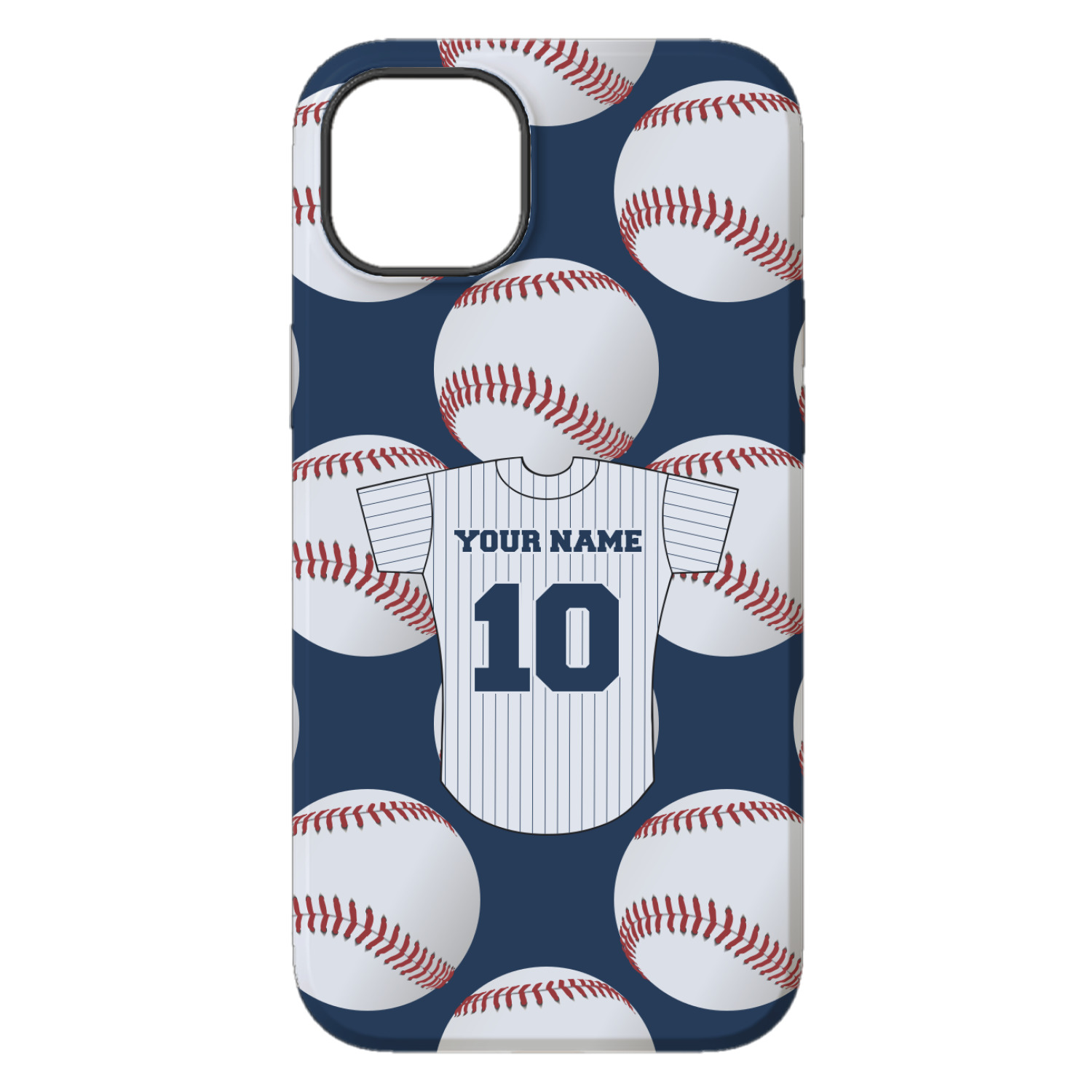 This design with baseballs in the background and a baseball jersey for name & number personalization will perfect for the baseball fanatic. The colors can all be changed - so you can change the colors to match your team color - the background color, the color of the jersey sleeves, the body and even the stripes' color can be changed!