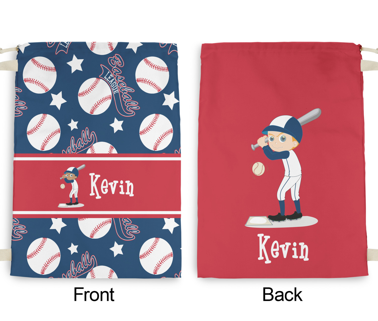 Carry your laundry in style with these customized laundry bags. Available in two sizes, featuring a natural colored woven strap and a cinch cord, these bags hold a lot of clothes or anything else you want to fit in them.