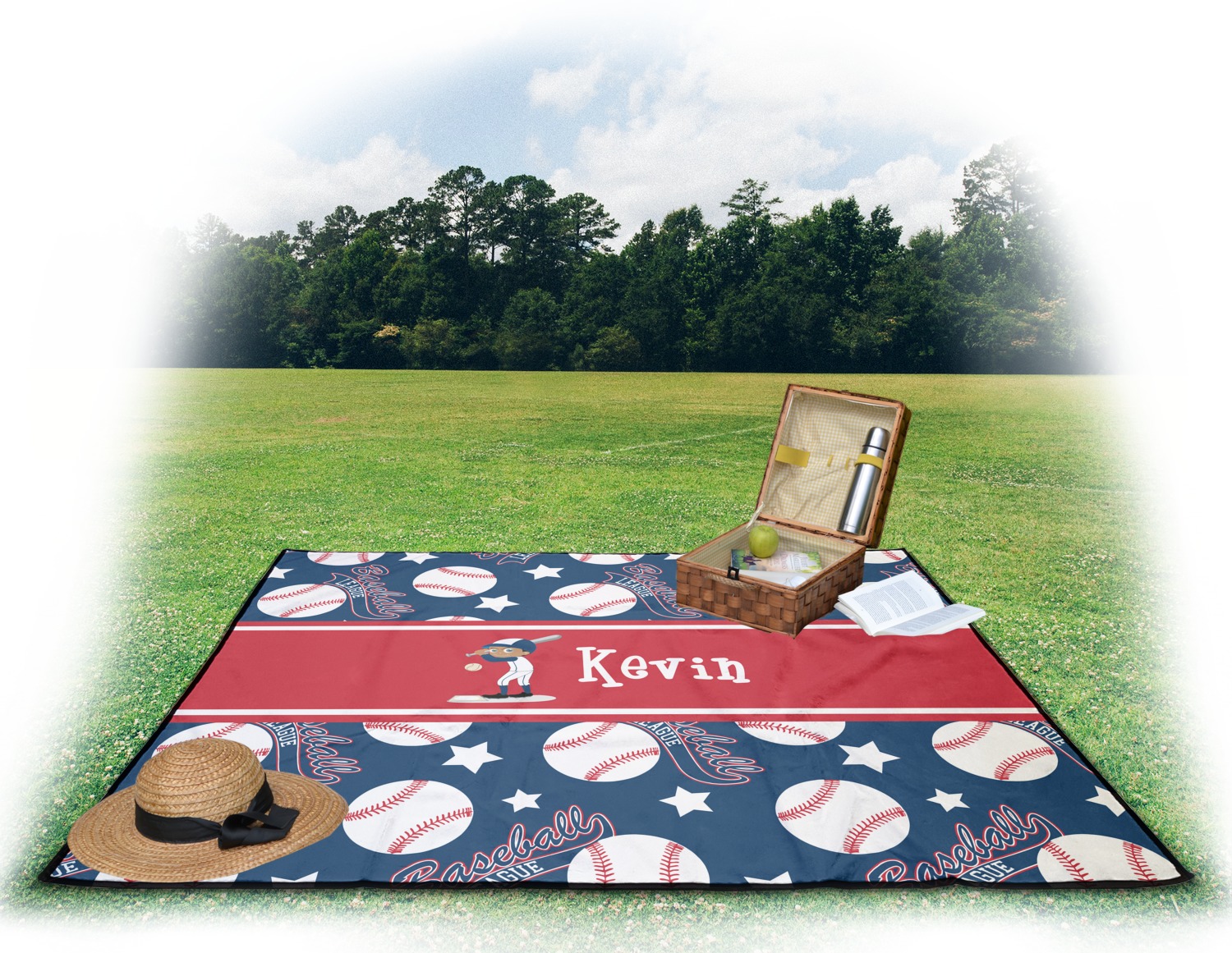This picnic blanket is perfect for hanging out with your friends at the park or anywhere outside. The top of the blanket is made of a super soft microfiber fleece. The bottom of the blanket is made of a black material similar to a rain jacket and is water repellent as well. This will keep any wet spots on the ground from soaking through your picnic blanket. No one likes a wet blanket. The blanket measures at approximately 50" x 59" and has a nicely finished ribbon edge.