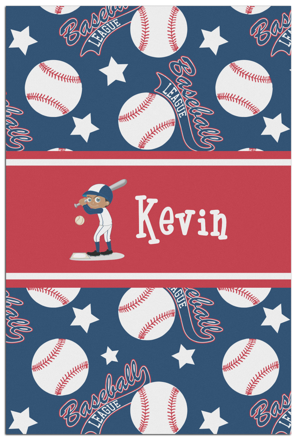 This baseball design is sure to please any baseball fan. The background in classic blue, with baseballs, baseball league banner and stars in red & white make this a classic color scheme for any boy. We have chosen to customize it with a red ribbon and have added a baseball player with his name as the personalization. The uniform on the baseball can be customized to his team colors. You can also customize his hair, skin and eye color as well.