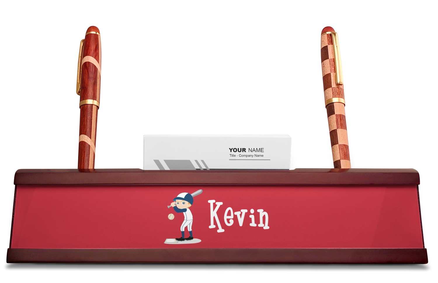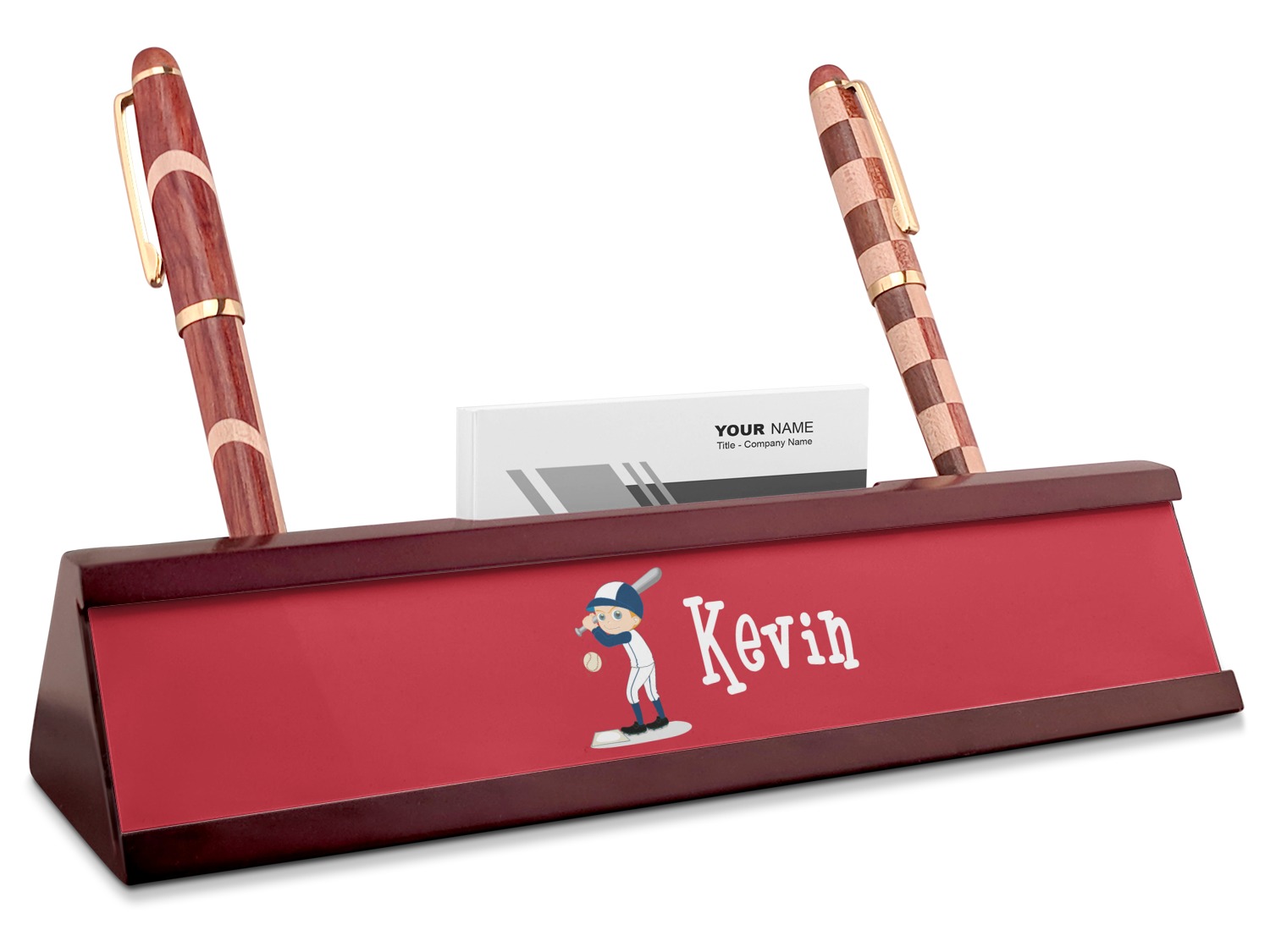 Baseball Player Designs for Red Mahogany Nameplates with Business Card Holder