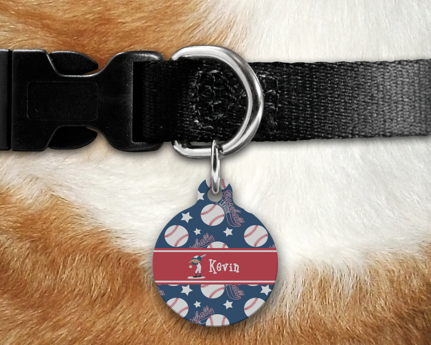 Go ahead; skip the monotony of plain pet ID tags with your very own, customized & personalized, round pet tag! This pet ID tag, fitting for both cats and dogs, will catch the eye of any onlooker (humans, canines, and felines, alike!) and accentuate your pet's individual personality.