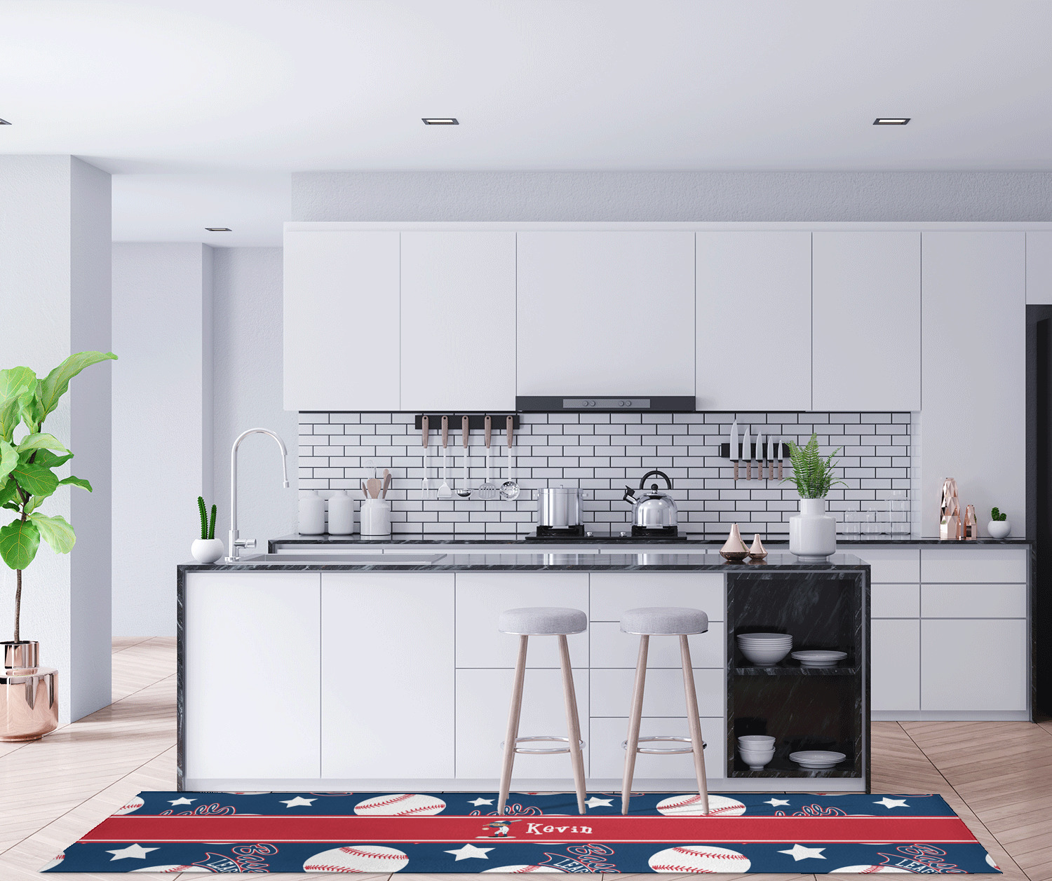 If you want to design it for your hallway - a vertical design is the perfect fit. If designing for to go in front of your kitchen island a horizontal design would suit you best! In our design system you can rotate the design either way to get the product you want.