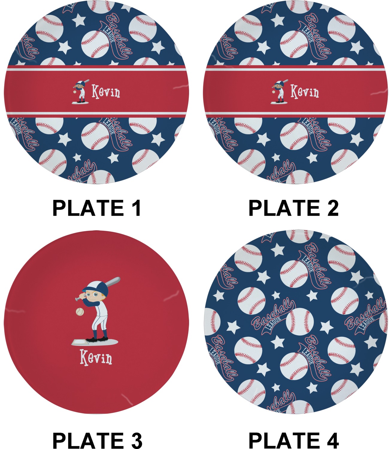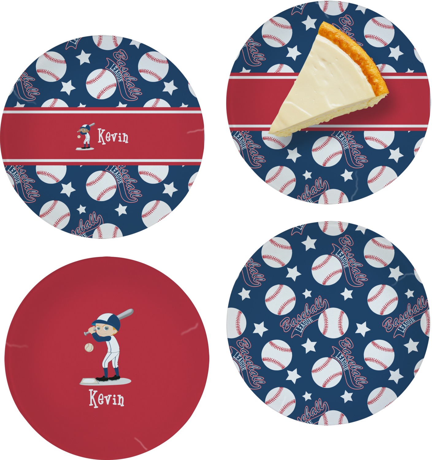 Baseball League Designs for Glass Appetizer / Dessert Plates 8" - Set of 4