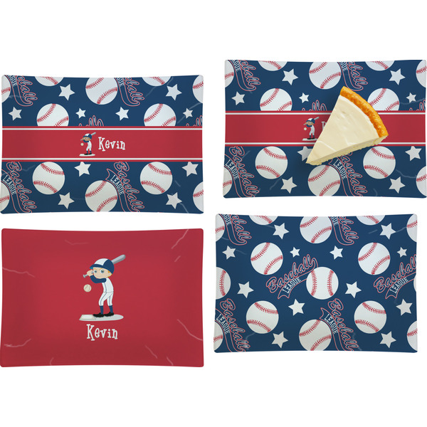 Baseball League Designs for Glass Rectangular Appetizer / Dessert Plate - Set of 4