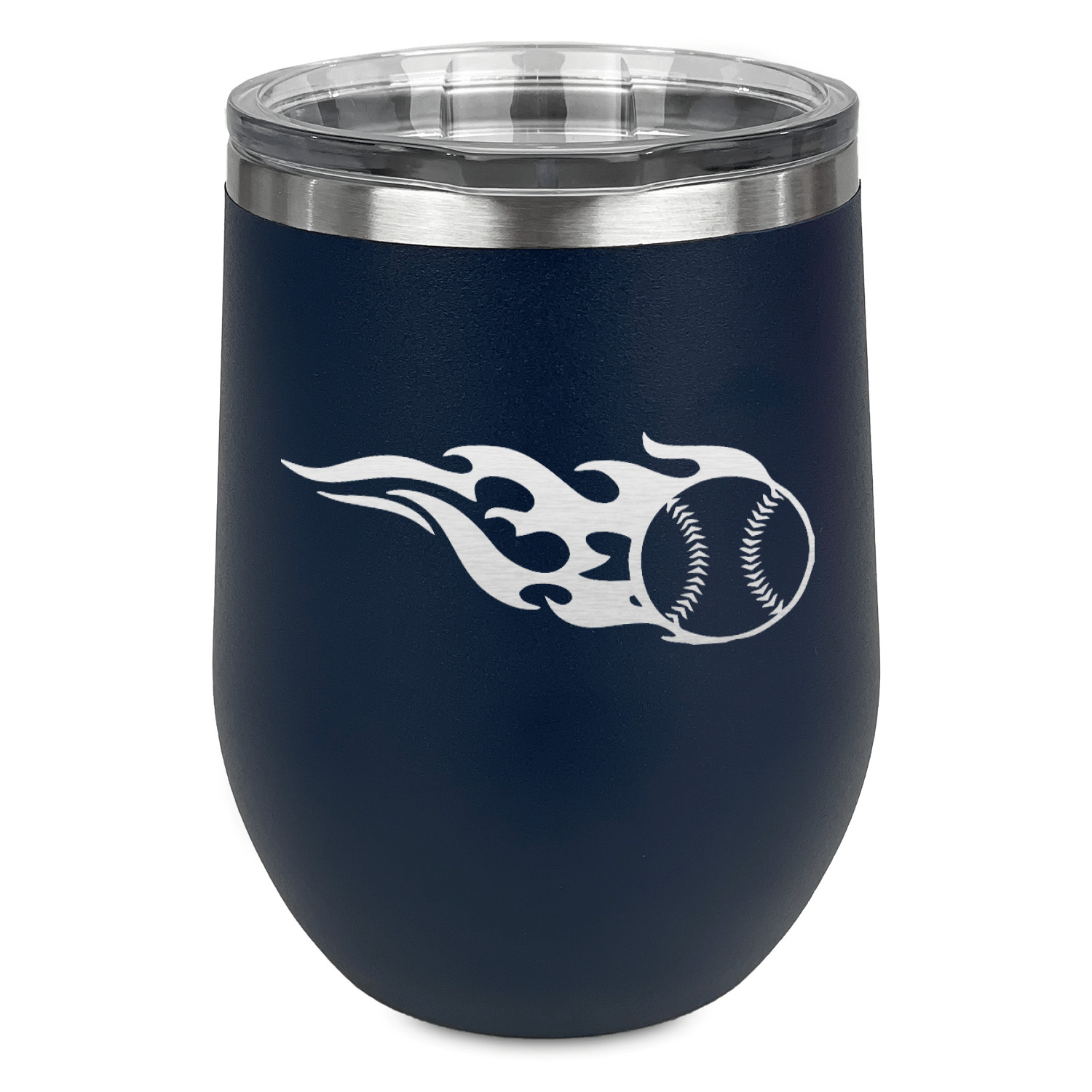 Baseball League Designs for Stemless Stainless Steel Wine Tumblers - Navy - Double-Sided