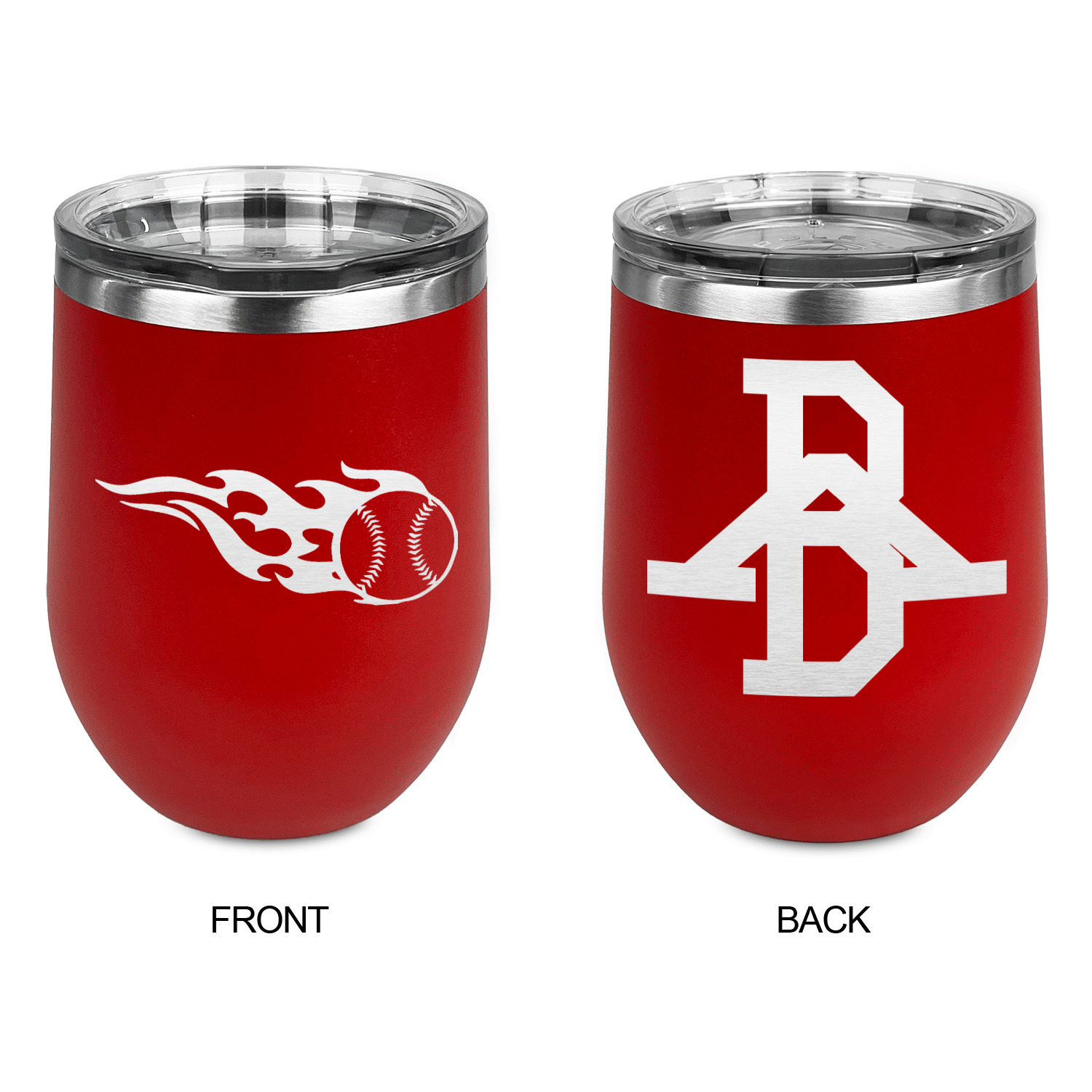 Baseball League Designs for Stemless Stainless Steel Wine Tumblers - Red - Double-Sided