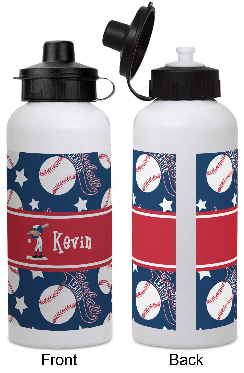 Baseball League Designs for Water Bottles - Aluminum - 20 oz - White
