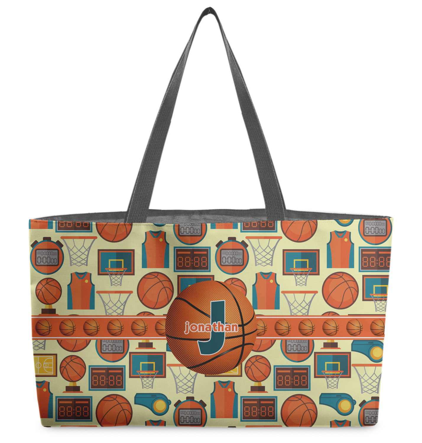 These beach totes are handmade here in the USA. Fabric is printed with your design. The tote is then sewn from the fabric pieces, lining and handles added.
