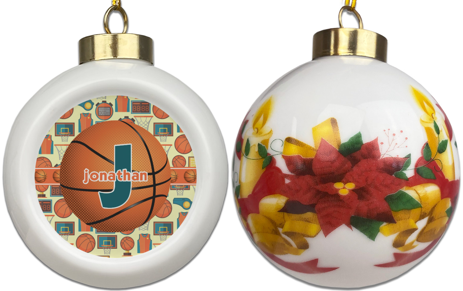 Our Christmas ornaments are a unique ceramic ball shape with a twist as it has a flat face to display your custom design! Select from one of our two design types - Christmas Tree or Poinsettia Garland - to adorn the curved back of your personal design. Each ornament measures 3H x 2.5W x 2D accompanied with a gold string accent for finishing touches to hang on your beautiful Christmas tree!