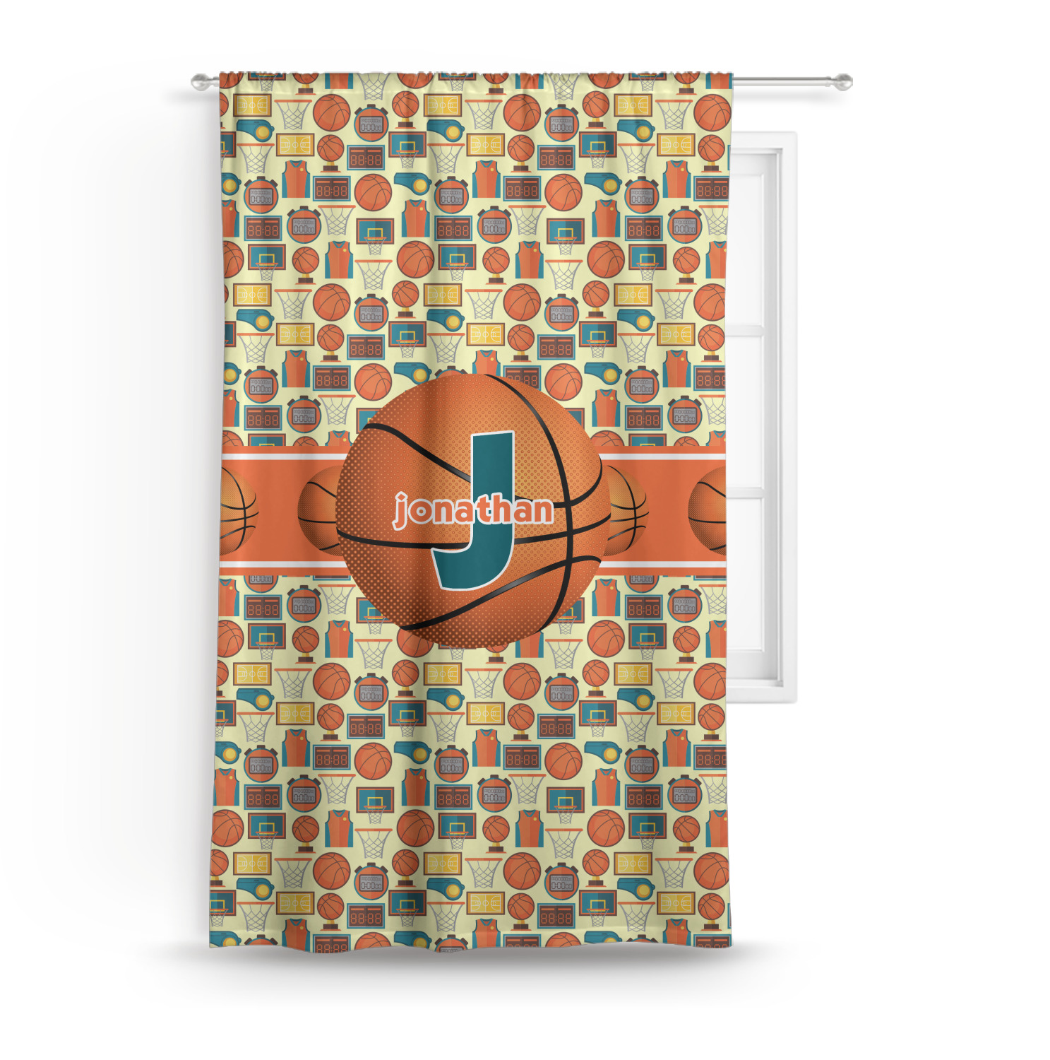 This is a fun design full of basketball graphics! The background has hoops, balls, jerseys, stop watches, and more! The colors are a fun combination of orange, teal, and yellow. The ribbon is orange and white striped with a fun basketball frame to go with it. The coordinating design is also fun with the same pattern but different colors! All elements are easily interchangeable for all of your personalizing needs.