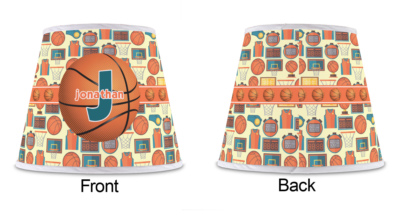 The base of this lampshade is 12 inches in diameter, and the top spans 8 inches in diameter. The total height of the lampshade is 10 inches. The angled nature of this custom lampshade concentrates the light, making it ideal for smaller spaces. This lampshade is made of matte, polyfilm, and displays your customization in its middle. The top and bottom of this colorful lamp shade are lined with a white fabric ribbon (which can be replaced with black inside the design studio) which frames your design and creates a sophisticated finish. As an UNO fitter lampshade, this unique lamp shade will fit a variety of bases.