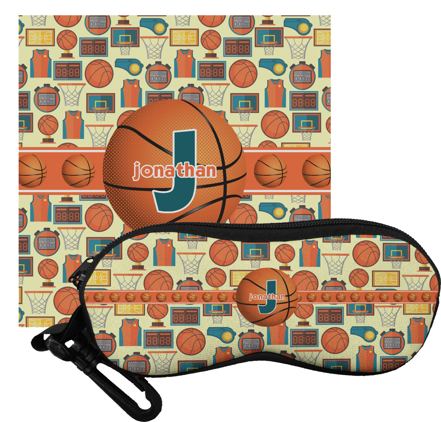 The cases have the design on both sides, a black zipper, and clips for hanging on a belt buckle or purse strap and also include matching lens cloths.