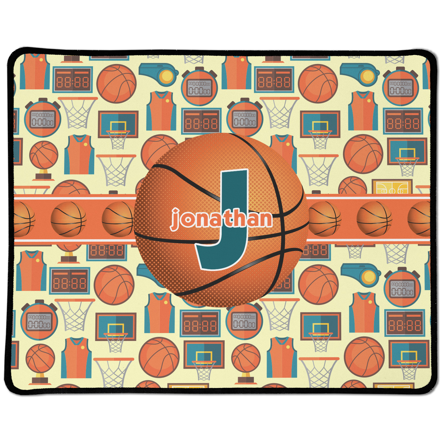This is a fun design full of basketball graphics! The background has hoops, balls, jerseys, stop watches, and more! The colors are a fun combination of orange, teal, and yellow. The ribbon is orange and white striped with a fun basketball frame to go with it. The coordinating design is also fun with the same pattern but different colors! All elements are easily interchangeable for all of your personalizing needs.