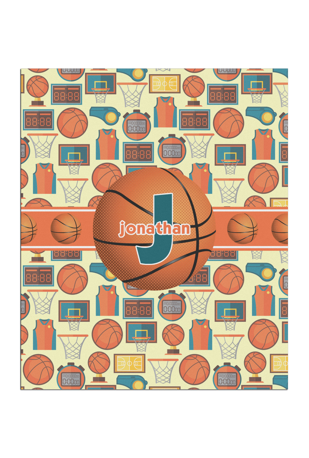 This is a fun design full of basketball graphics! The background has hoops, balls, jerseys, stop watches, and more! The colors are a fun combination of orange, teal, and yellow. The ribbon is orange and white striped with a fun basketball frame to go with it. The coordinating design is also fun with the same pattern but different colors! All elements are easily interchangeable for all of your personalizing needs.