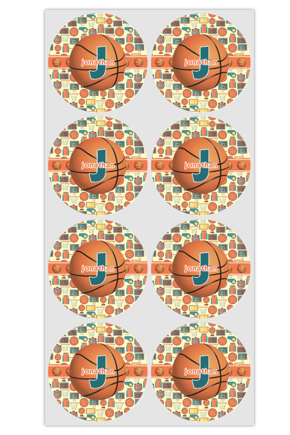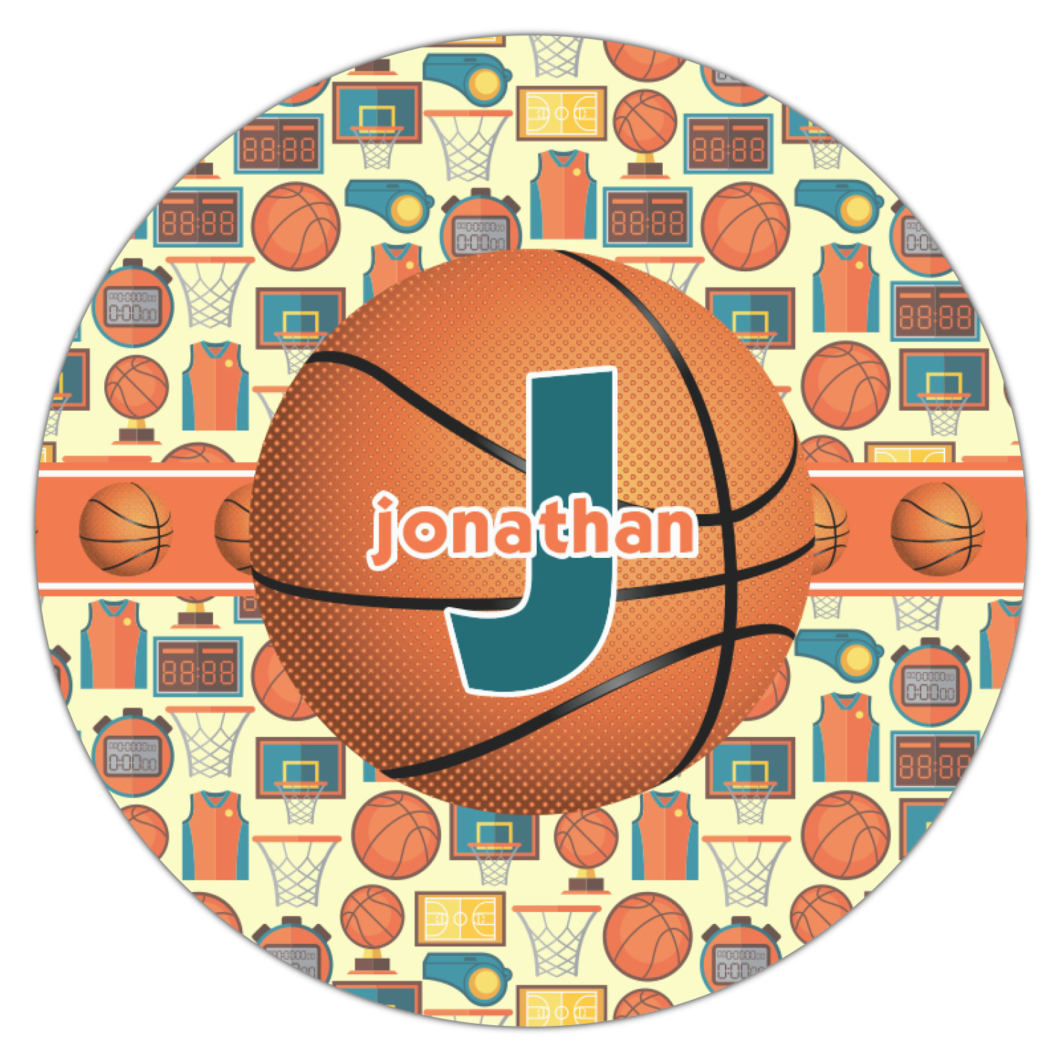 This is a fun design full of basketball graphics! The background has hoops, balls, jerseys, stop watches, and more! The colors are a fun combination of orange, teal, and yellow. The ribbon is orange and white striped with a fun basketball frame to go with it. The coordinating design is also fun with the same pattern but different colors! All elements are easily interchangeable for all of your personalizing needs.