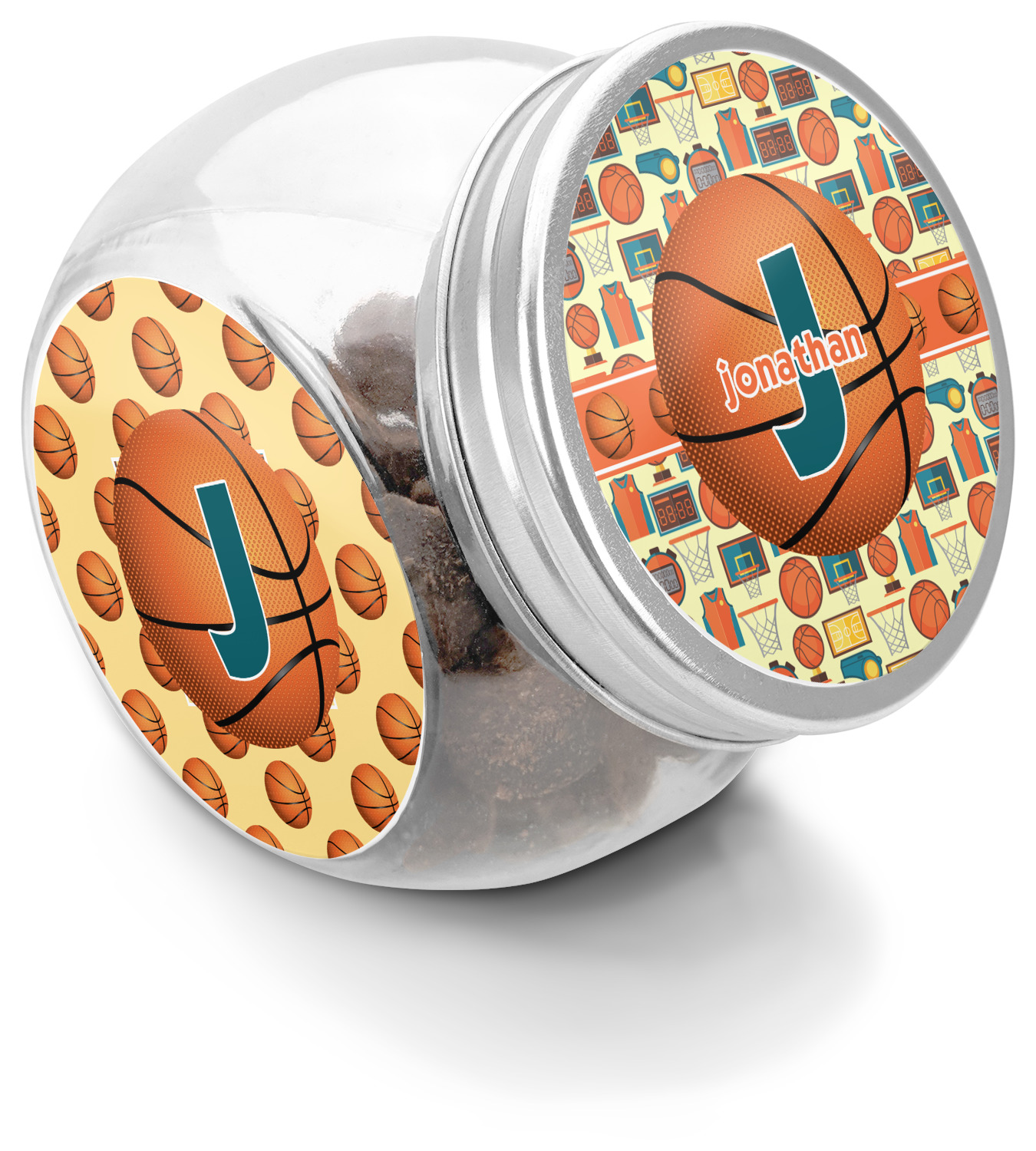 This treat jar is an excellent way to store treats for your favorite canine or feline. Moreover, their delicate, classy appearance makes them a tasteful addition to your countertop's décor. Crafted from clear glass, its unique construction and silver metal, screw-on lid allows for quick and easy access. Three, permanent, vinyl stickers are applied to both sides of the jar and lid, presenting your personalized design. The base of this glass, dog treat jar is 3.4" x 4.75", and the jar stands at 5" tall. Though on the smaller side, this jar is best suited for smaller treats or training treats.