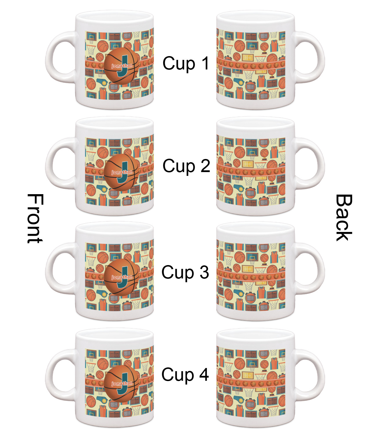 Each of our espresso mugs is a ceramic material sure to keep your drink warm. Personalize one cup for yourself, or order a set of 4! Its the perfect little gift for any coffee lover! We carry two sizes for you to personalize - 3 oz. (approx. 3.25" x 2.325" x 2.625") or 6 oz. (approx. 4" x 2.9" x 2.9"). Our 3 oz. mug is perfect for that single shot espresso while our 6 oz. mug can be your next favorite cappuccino cup holding two shots of espresso!