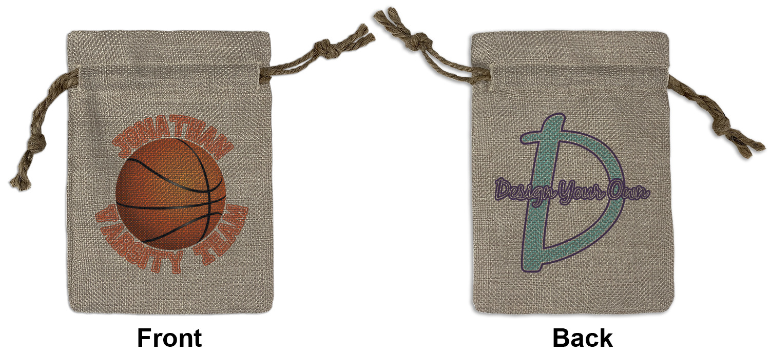 We sell our Burlap Gift Bags in 3 variant sized bags. Made with burlap polyester, each personalized bag can be secured with a twine drawstring pull. Your custom design is available to print on one side or both sides - completely up to you! The sizes of the bags measure approximately 4.5" x 6.5" for the smallest size, 6.5" x 8.0" for the medium size, and 6.5" x 13.5" for the large-sized bag.