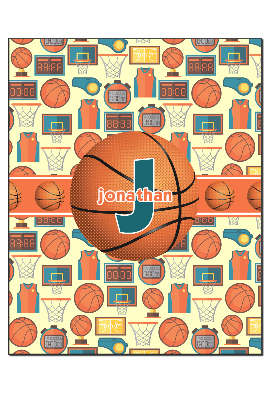 This is a fun design full of basketball graphics! The background has hoops, balls, jerseys, stop watches, and more! The colors are a fun combination of orange, teal, and yellow. The ribbon is orange and white striped with a fun basketball frame to go with it. The coordinating design is also fun with the same pattern but different colors! All elements are easily interchangeable for all of your personalizing needs.