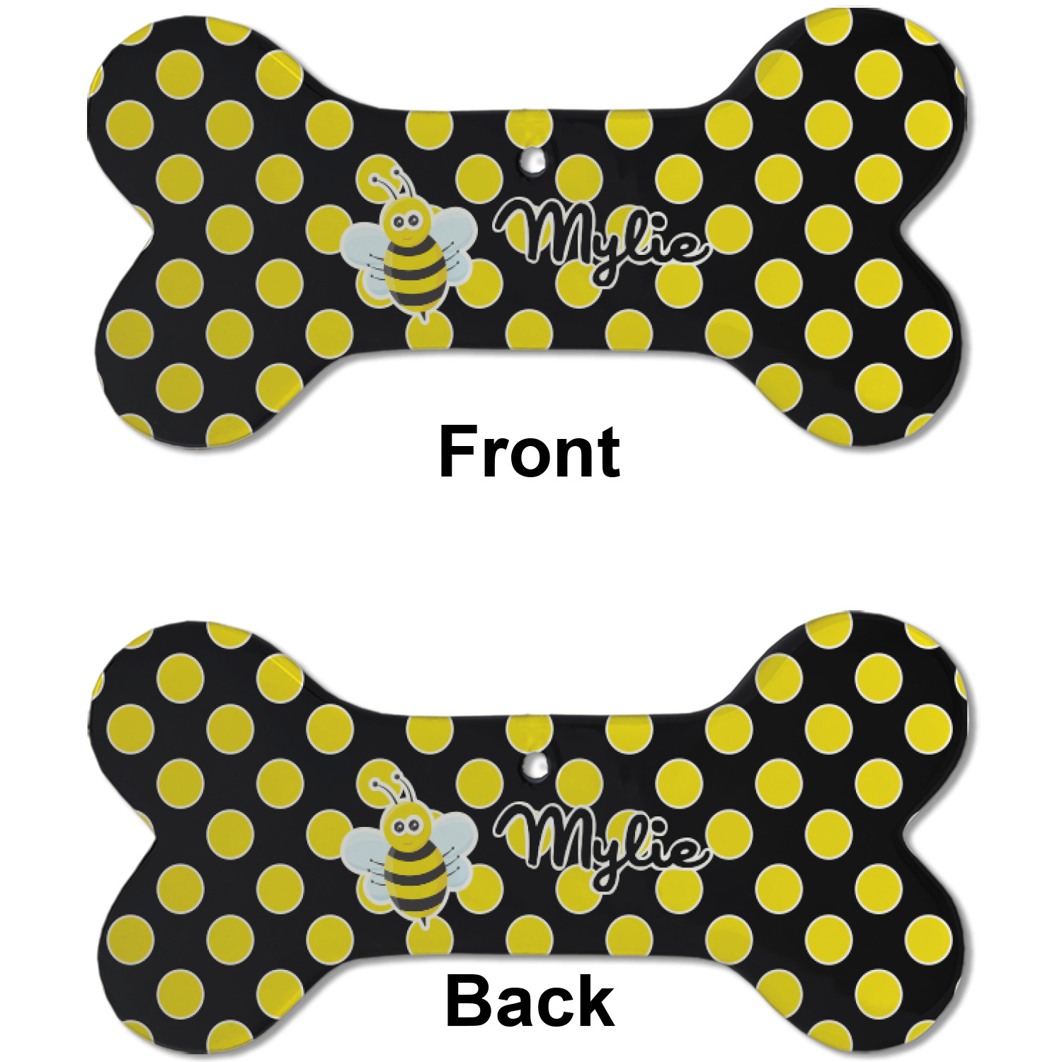 Our dog Christmas ornaments are a ceramic material with a bone-shaped structure hung horizontally. We offer two printing styles to personalize your furry friend's ornament! Choose a one-sided printing, perfect for wall decor, memorial accessory, or doghouse nameplate! Create a double-sided ornament perfect for adorning the Christmas tree. Each dog bone ornament is approximately 4.75" x 2.25" and is printed here in the USA.