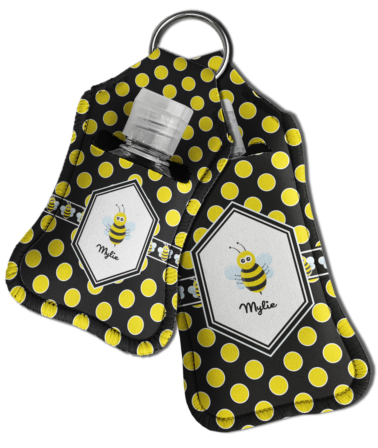Each hand sanitizer holder comes with its own empty travel-sized, refillable hand sanitizer sure to fit snug in your customized sanitizer case! Our hand sanitizer cases are a durable, yet soft neoprene material sure to last any daily activities or travel agenda. Customize and personalize a hand sanitizer bottle holder with one of our two sizes - small (4.25" x 2.25") or large (5.5" x 2.5"). Each travel sanitizer holder comes with a keyring for attachment on bags, keys, or more!