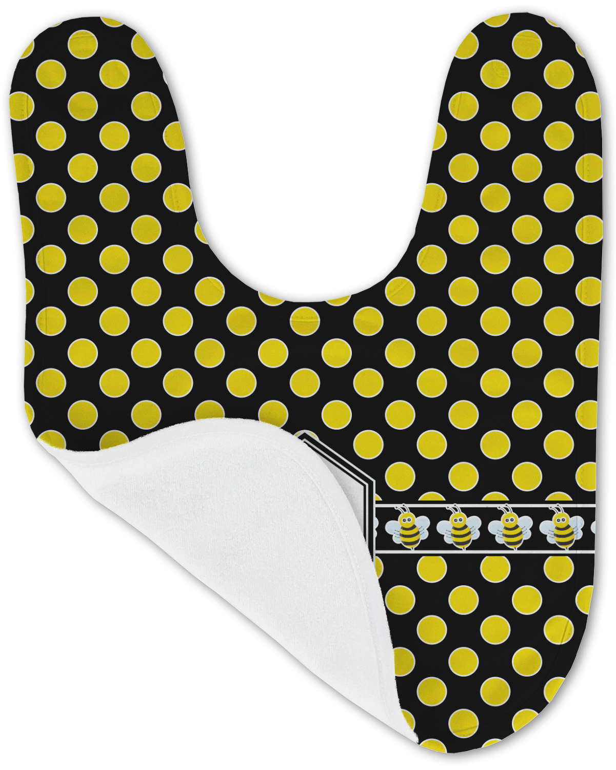 Made of soft polyester, each customizable bib hugs comfortably around the neck to catch every drip and drool. Each bib design is printed with baby-safe ink and finished with a secure stitch pattern and velcro clasp. We carry two customizable bib styles -Microfiber Velour and Jersey Knit.
