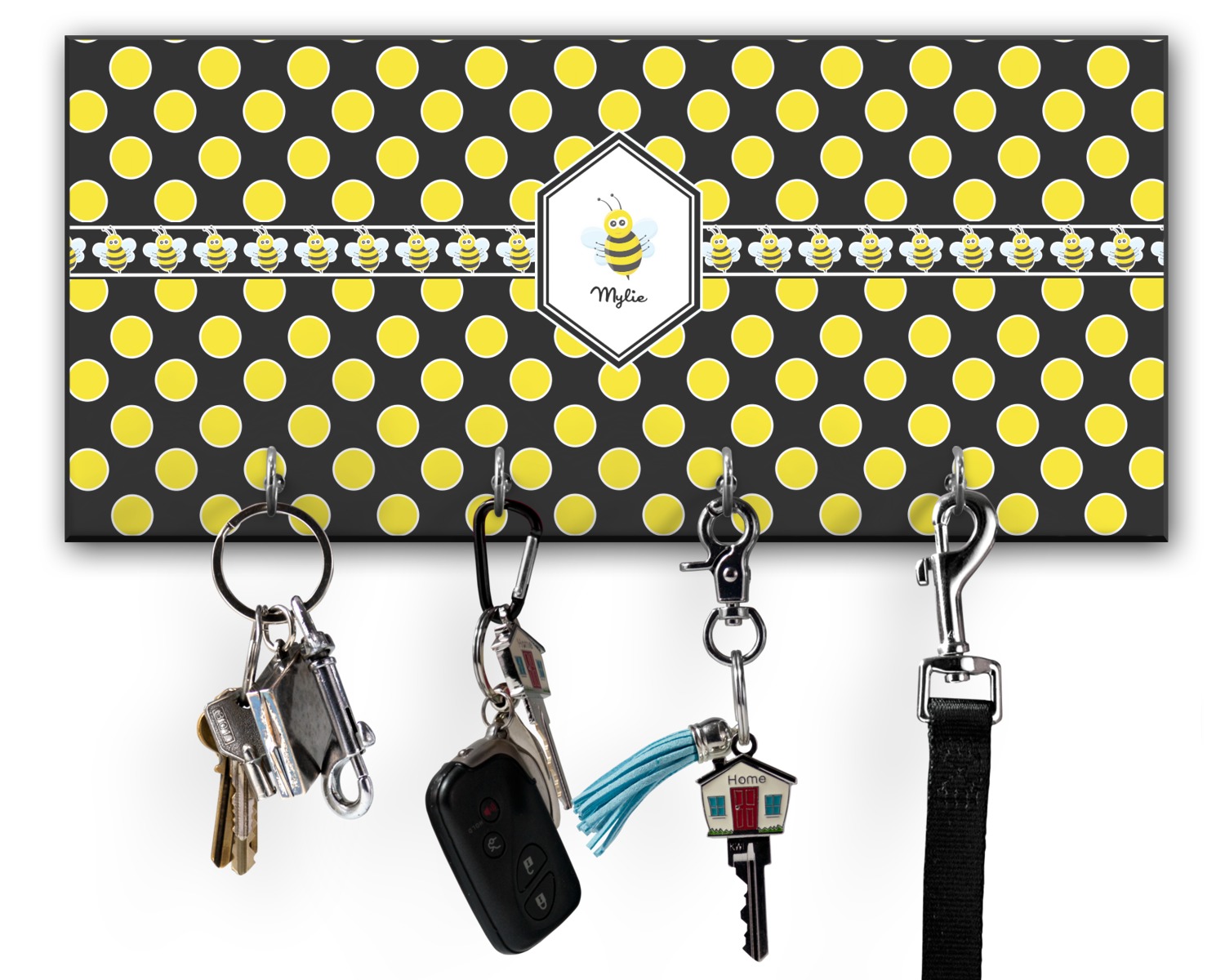 This 11" x 5" key hanger is made of sturdy wood and has four metal hooks lining the bottom. This is the perfect size for a family with several drivers. Not only can you hang keys on it though, but pet leashes and other small items. The board is black on the sides and back and is printed with the design of your choice on the front.