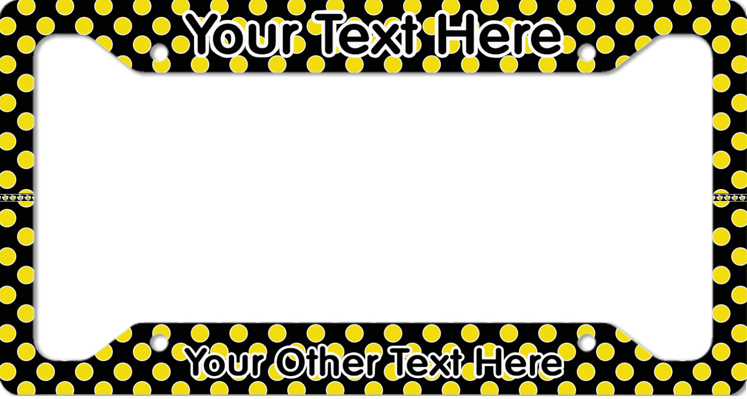Each customizable license plate frame is made from a fine, yet sturdy aluminum material that measures approximately 6.5 x 12.15 inches, accommodating most standard license plates. The thickness allows the license plate frame to adhere completely to your license plate for a seamless look. We carry 3 styles of license plate frames to customize - Style A has texts on top and bottom, Style B offers texts on top and bottom as well as a full fill bottom border, and Style C offers text at the bottom only. The personalized license plate frame comes with four mounting holes for easy installation! We print each custom design across the frame with a glossy finish.