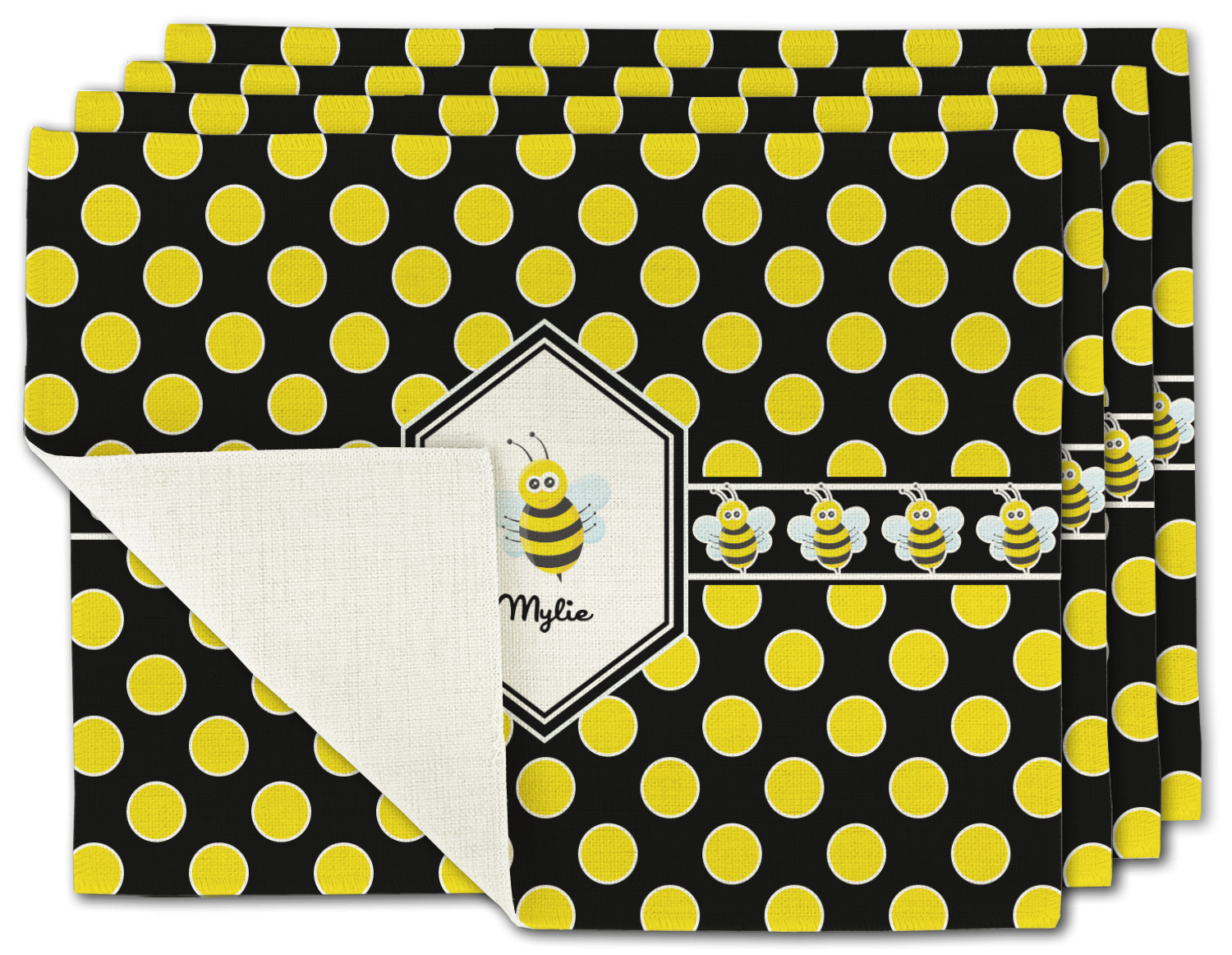 No stings here, just nothing but smiles with these bumble bees. Who said bees and polka dots couldn't go together? The traditional yellow and black bumble bee has been jazzed up with some fun and funky polka dots. We have given our bees a fun place to play on a black background with yellow polka dots .