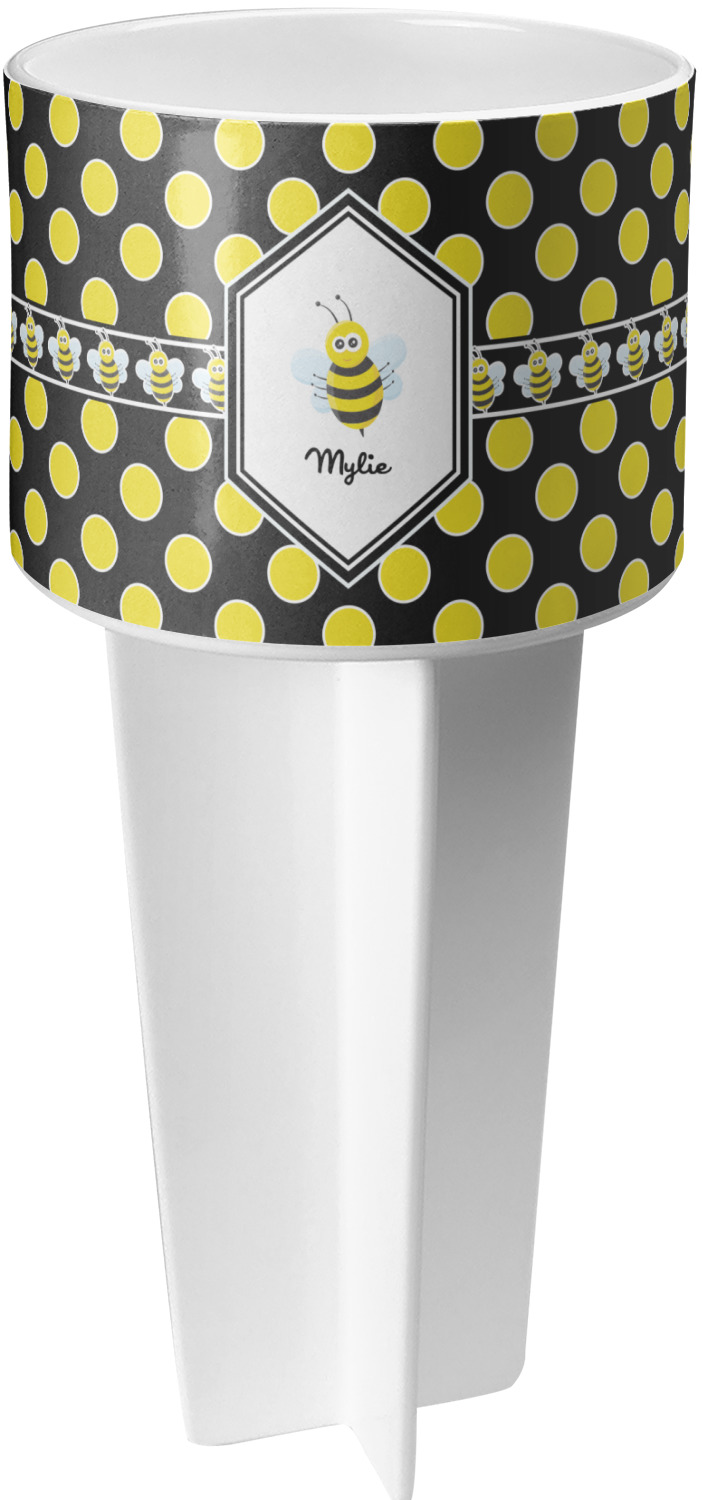 This cup holder has a large stake at its bottom that anchors it to the sand or ground below, while the cup holder rests above the stake. The entire drink holder is made of durable plastic and displays your customization around the cup holder portion. We sell these personalized beach spikers in two different colors: black and white.