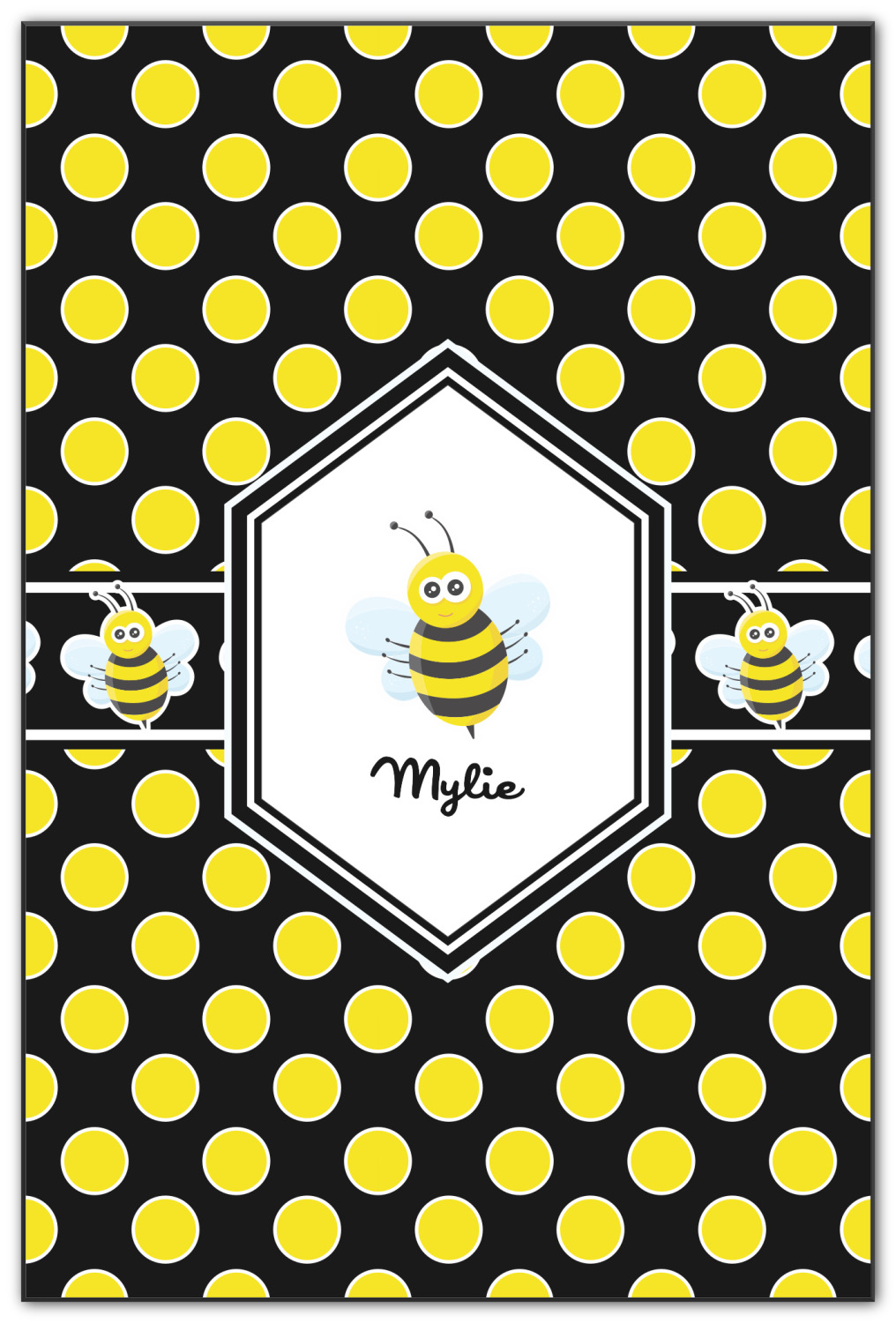 No stings here, just nothing but smiles with these bumble bees. Who said bees and polka dots couldn't go together? The traditional yellow and black bumble bee has been jazzed up with some fun and funky polka dots. We have given our bees a fun place to play on a black background with yellow polka dots .