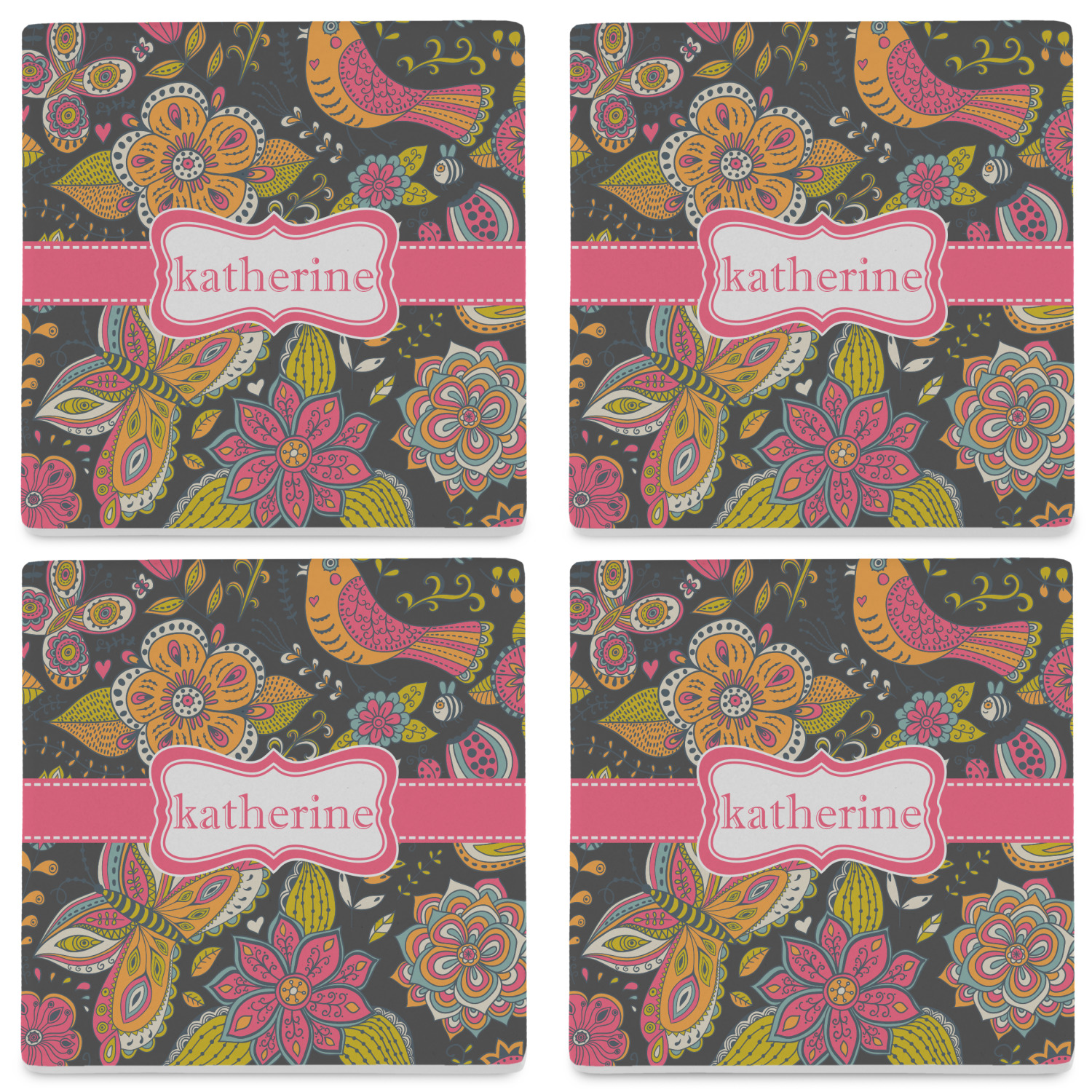 By default, the 4 coasters all have the same design on them, however, you can change that and have a different design on each one of the 4 coasters. The choice is yours.