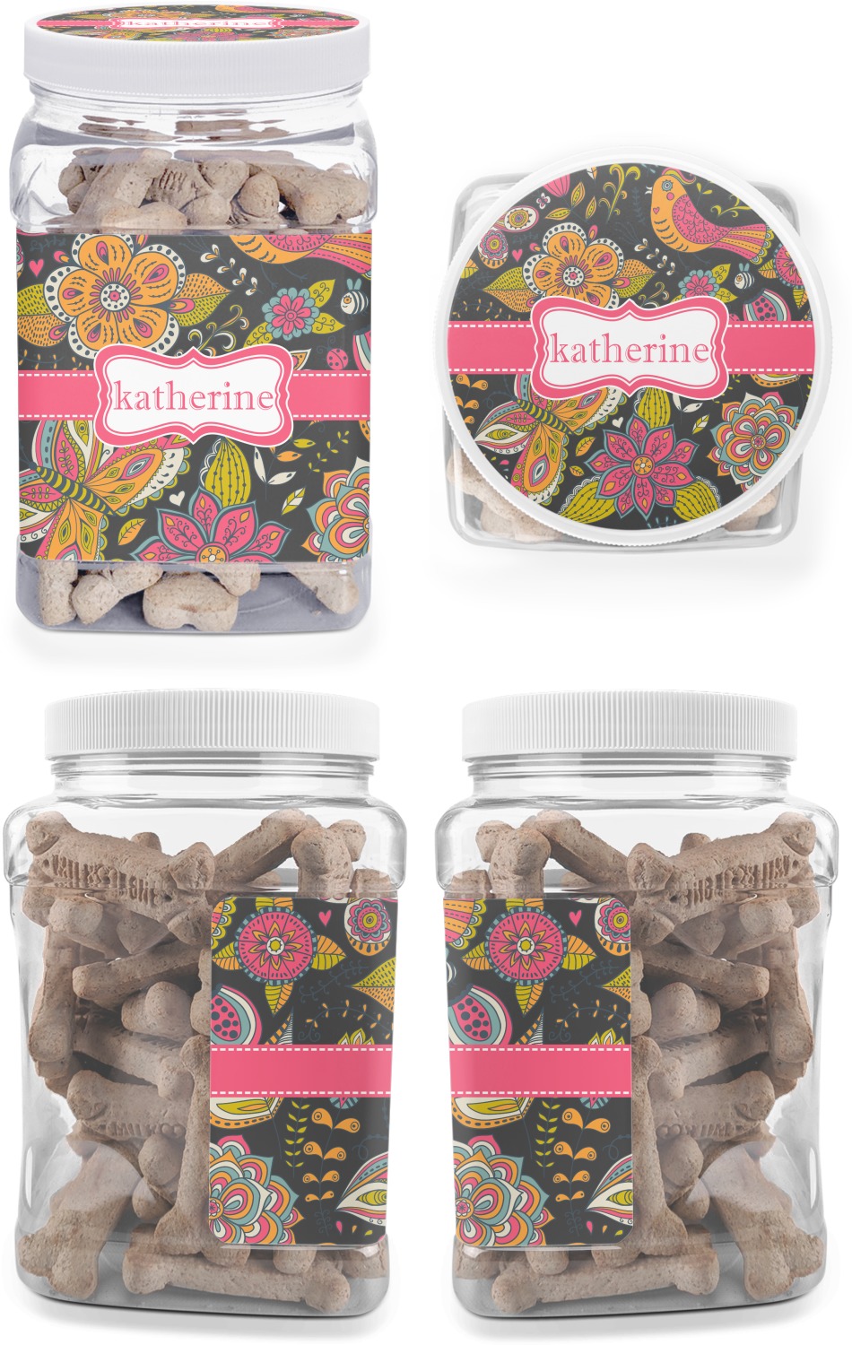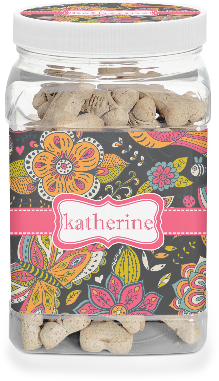In the market for some other, cute pet supplies? Have a look at our Pet Accessories department, where you can customize a matching dog food bowl, dog food mat, or even a glass dog treat jar! Overjoyed with the idea of a customizable container? Explore the kitchen department within our Home and Garden category, where you can personalize snack containers for humans, as a gift, or just as a part of your kitchen decor!