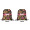 Our drawstring backpacks are available in 3 sizes. Small is approx 15in tall by 13in wide. Medium is approximately 18in tall by 17in wide. Large is 23in tall and 19in wide.