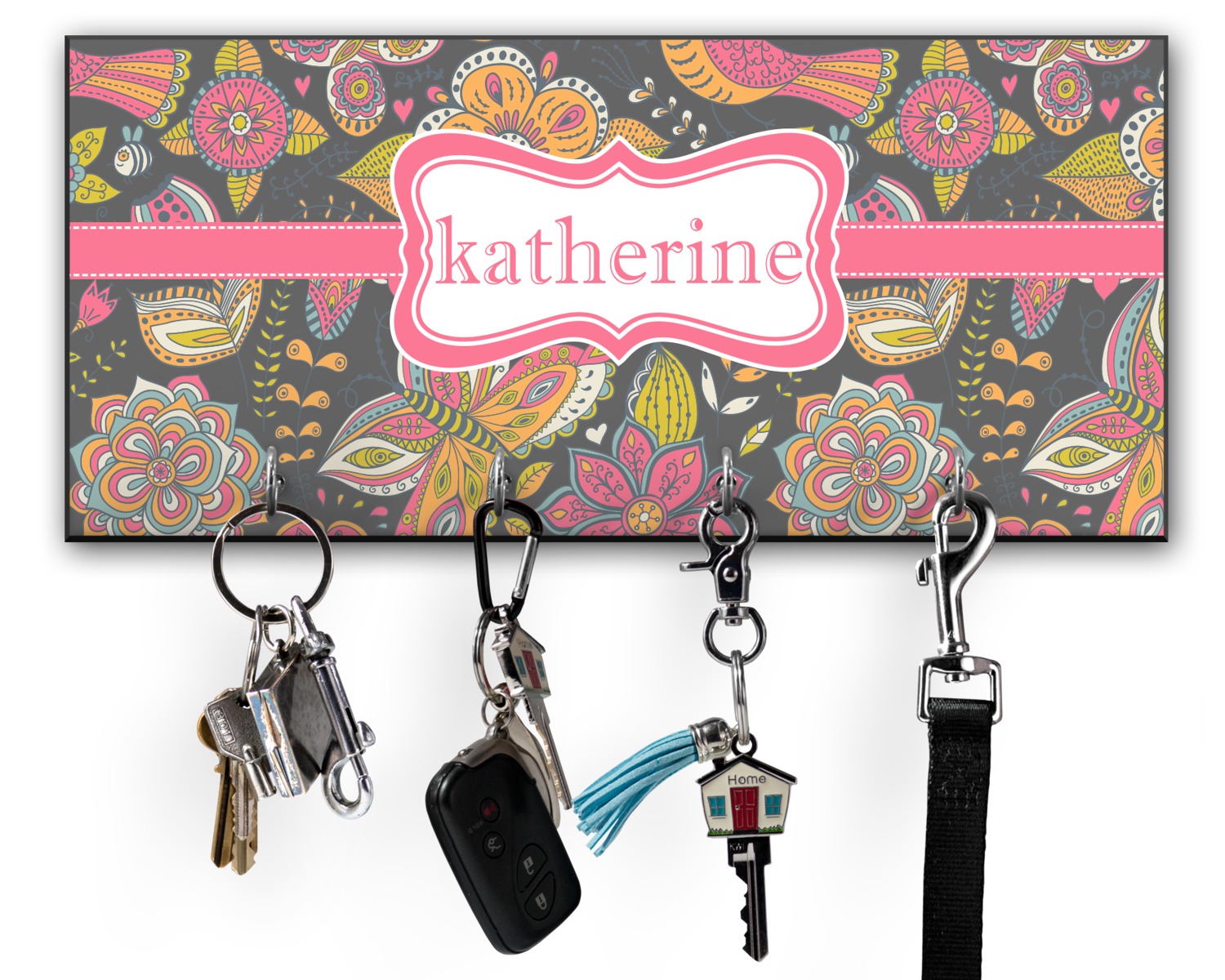 This 11" x 5" key hanger is made of sturdy wood and has four metal hooks lining the bottom. This is the perfect size for a family with several drivers. Not only can you hang keys on it though, but pet leashes and other small items. The board is black on the sides and back and is printed with the design of your choice on the front.