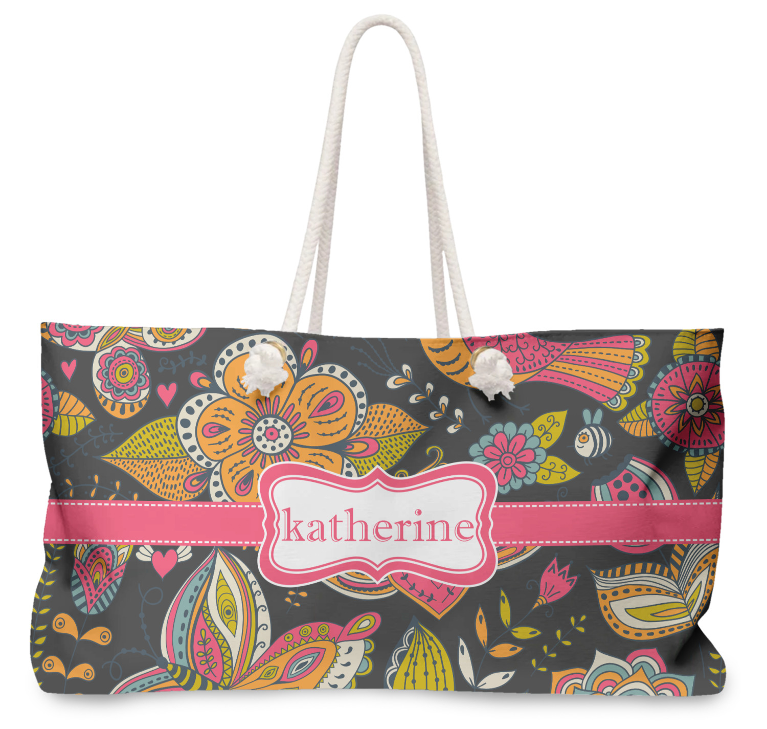 These weekender totes can be customized front and back. The totes are full all over print - so the choice of how background are endless - from beautiful floral or leaf patterns to geometrics or some classic Van Gogh artwork - the possibilities are endless. The totes can also be decorated with photos and logos.