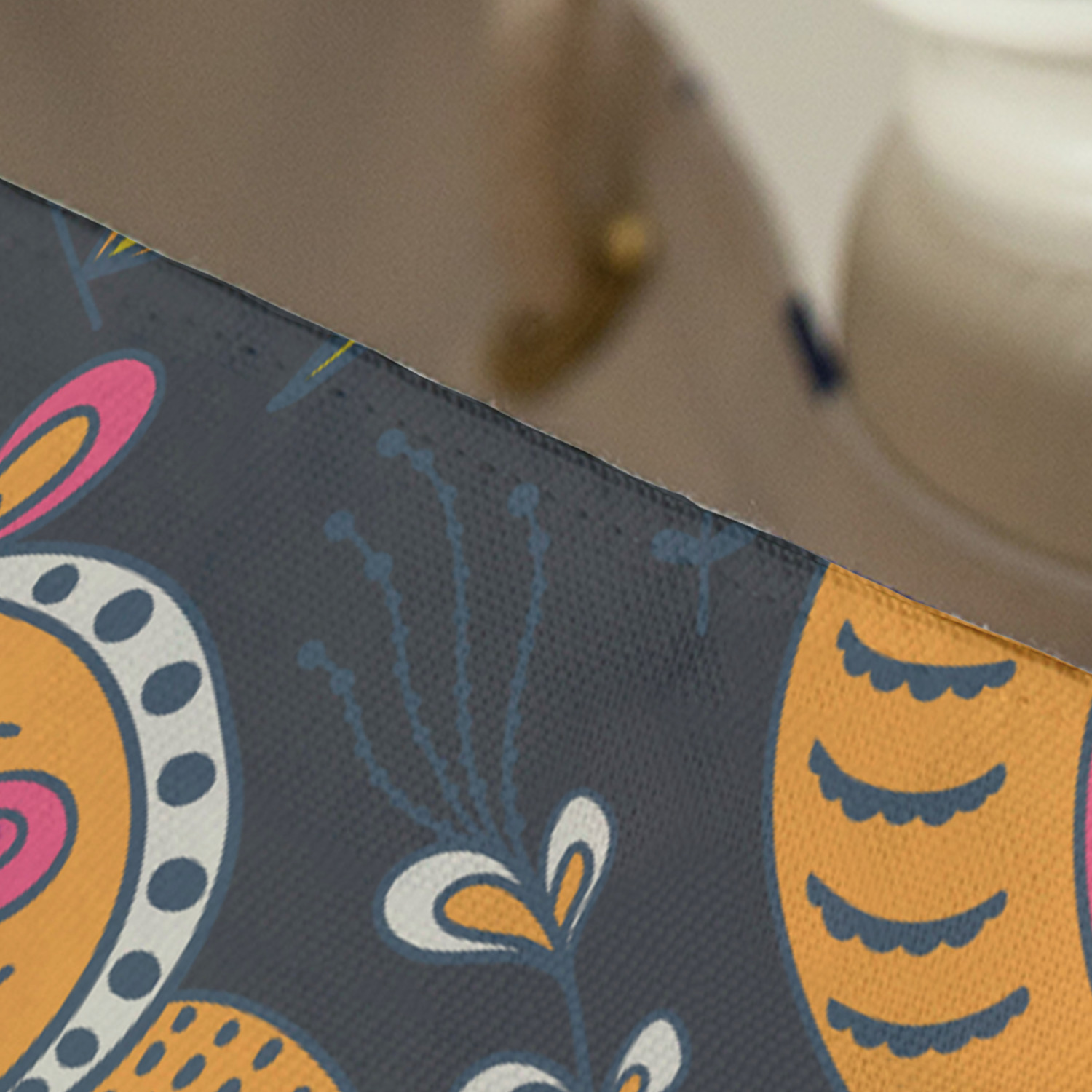 These large totes are handmade i.e. printed, cut and sewn right here in the USA. The canvas like material is printed using dye sublimation; the fabric is then cut and sewn along with a beautiful cream colored lining (to match the rope handles). The brass grommets are then added and the cream colored rope if fed through the grommets and knotted.