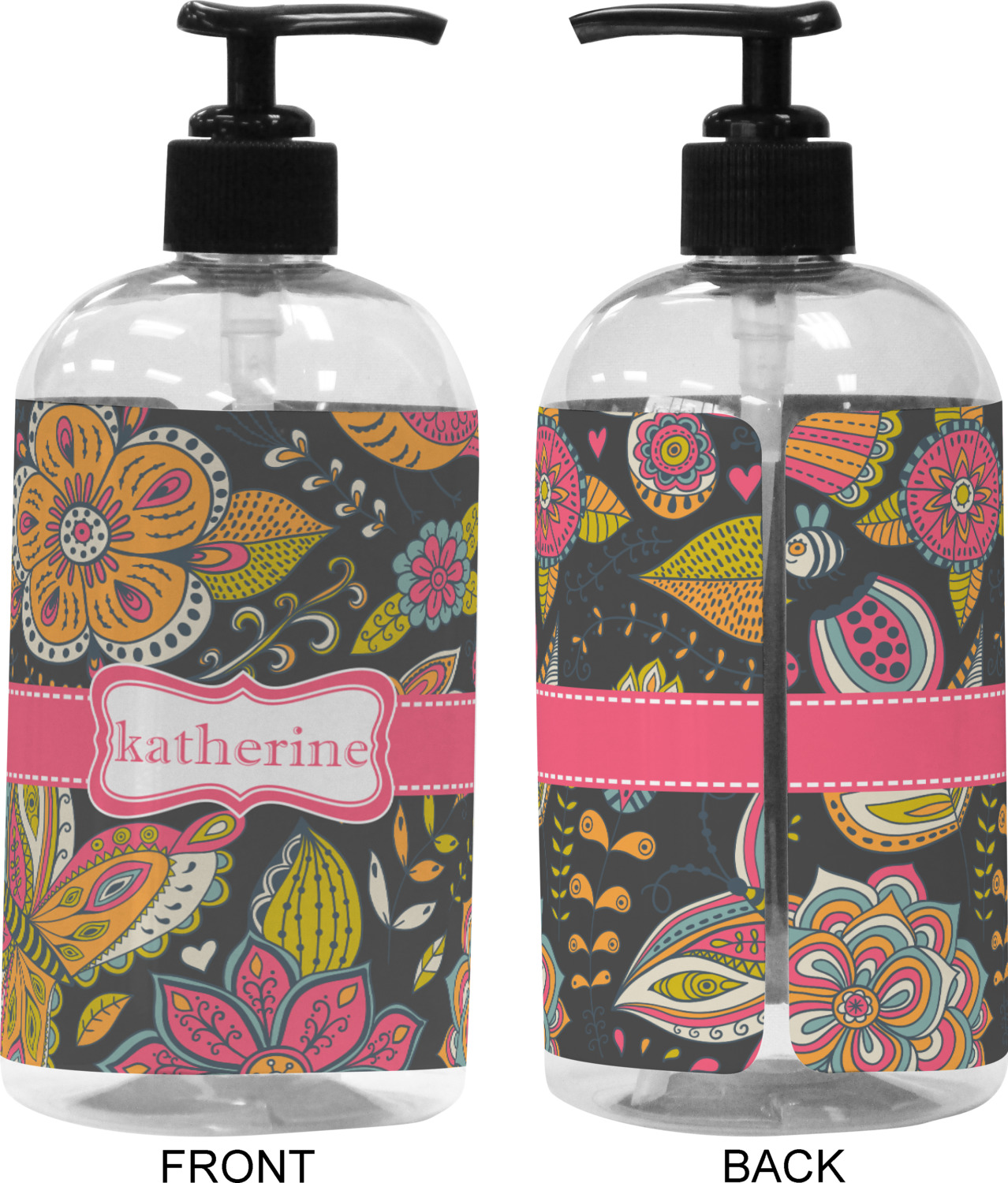 We adhere and wrap your custom printed design around the clear plastic bottle; there is a slight gap at the back for you to see the liquid level. Your design is printed on high gloss vinyl with eco-solvent inks and completely waterproof and will not fade or deteriorate over time. The vinyl is machine cut and adhered by hand to the clear plastic bottle.