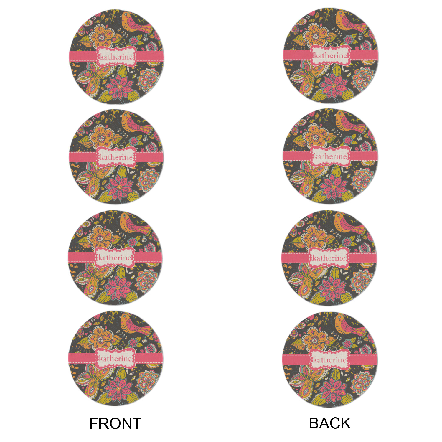 A pink ribbon with white stitching attached to a decorative white label trimmed in pink ties the entire design together. Add personalization of your choice in a coordinating color to make this pattern even more special.