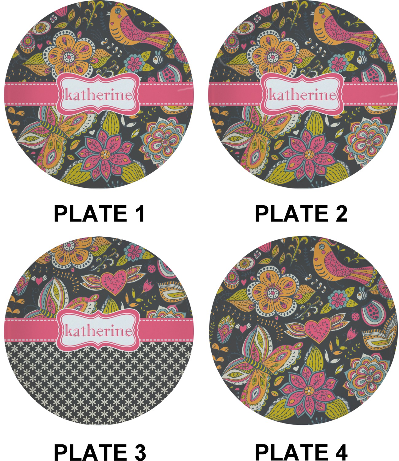 With a of designs and patterns, these plates are completely customizable. Choose a foodie design, complete with red-hot chili peppers, or go classic with stripes or plaid. Include your monogram or family name to make sure these plates never get lost at parties!