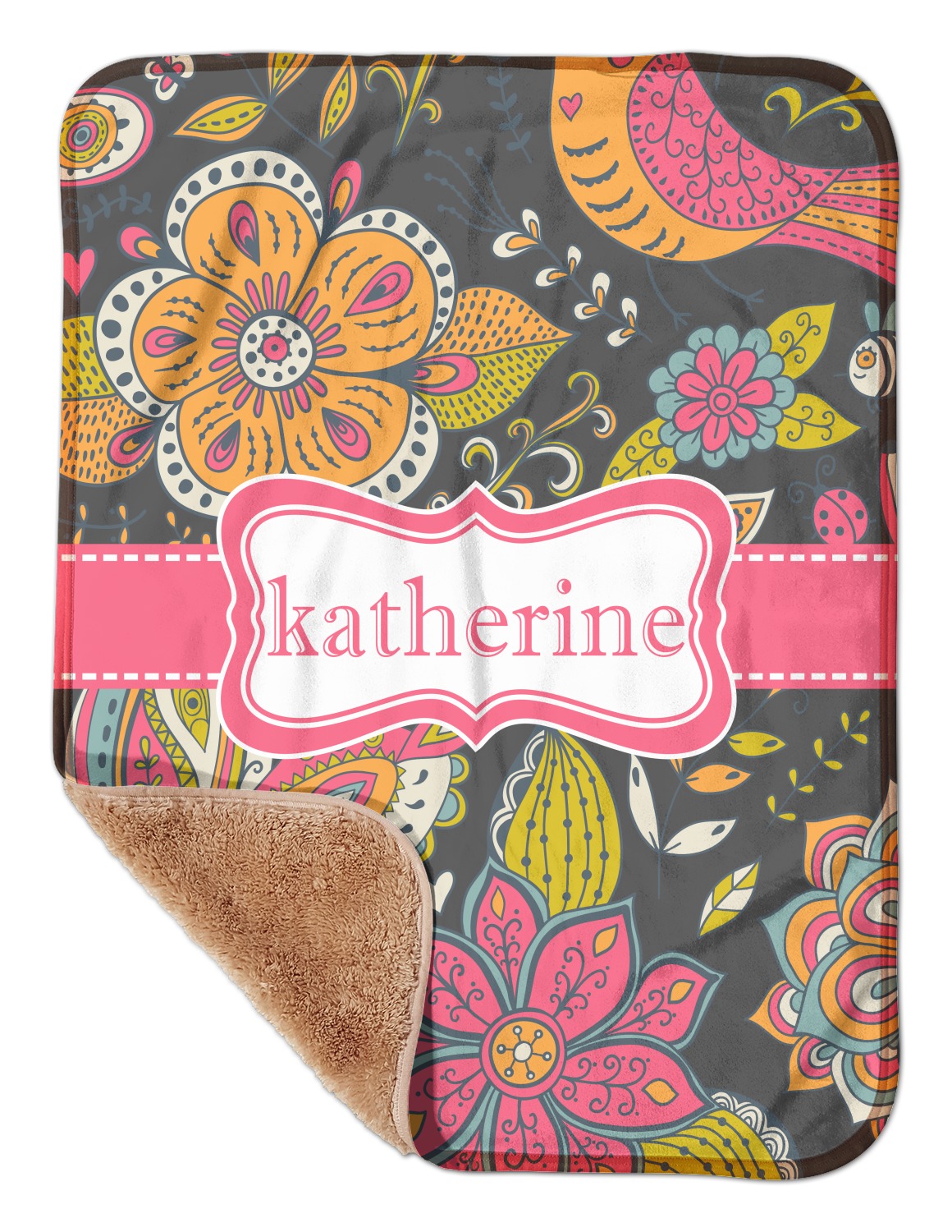 These toddler blankets are made of two different materials; the front side is made of a velvety, minky-like material that displays your customization and is perfect for a baby's delicate skin. The underside is crafted from a fluffy, sherpa fleece, and bears a classy, tan color. The dual texture gives your baby added comfort, as both sides are incredibly soft and plush. The corners of this blanket are rounded, and the ribbing of the blanket is a tan color, which complements the sandy color of the sherpa fleece. At approximately 30 by 40 inches, this custom baby blanket is the perfect size for babies and toddlers.