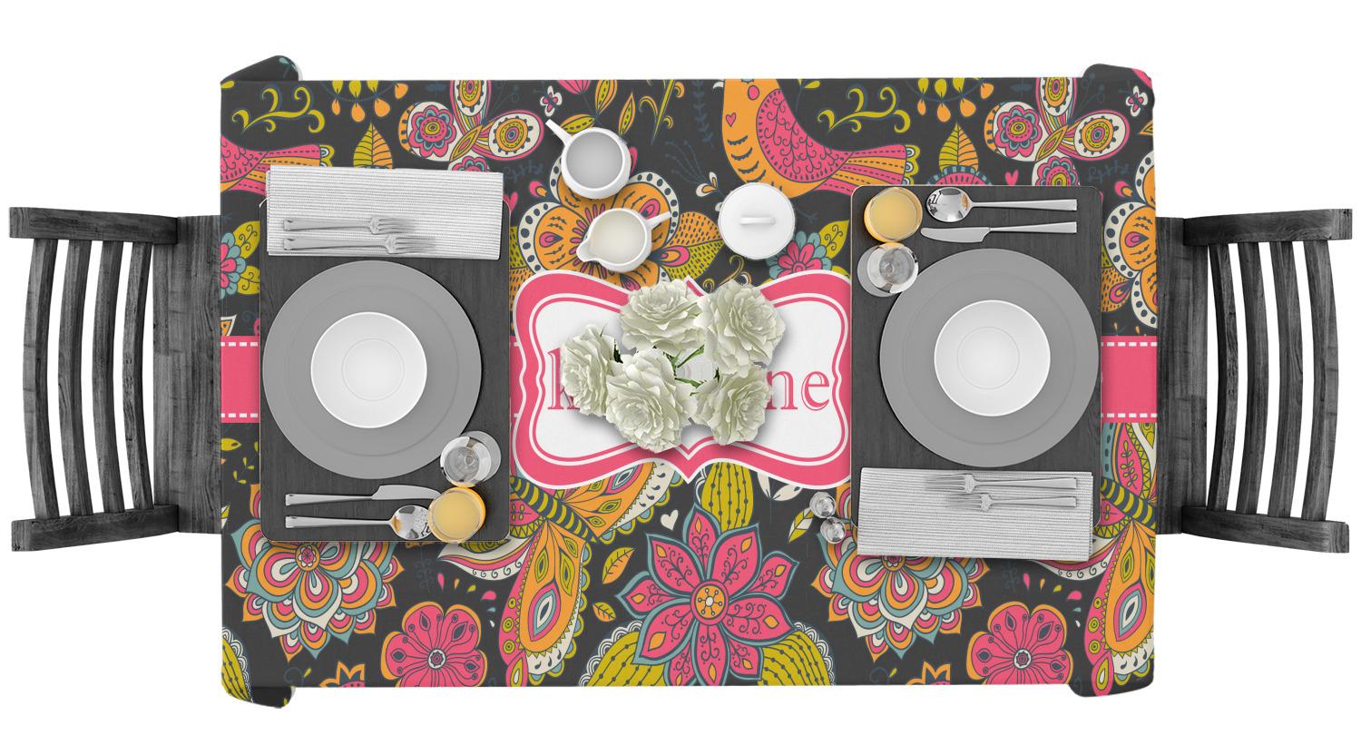 Whether you want to create a formal or informal dining room ambiance our personalized tablecloths will do just the trick!! Pull them out for the holidays, dinner parties, or use them everyday. We have a plethora of designs that cater to kids, teens, and adults; all tastes can be satisfied!!