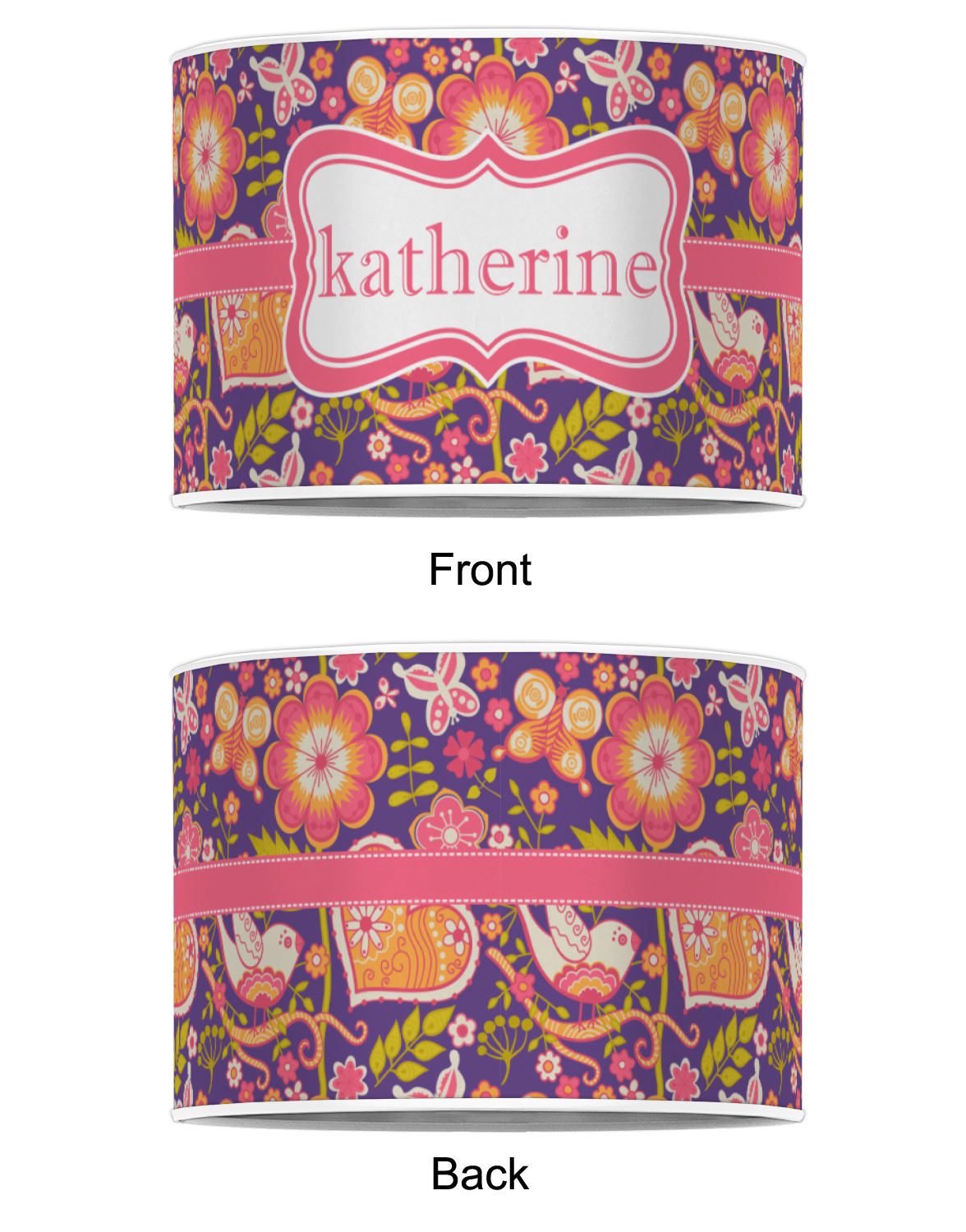 Our personalized drum lamp shades are available in 2 different materials: Poly-film or fabric. Poly-film lamp shades come with the option of white or black border trims to best match your customized design. Fabric lamp shades are finished with a rolled edge for a clean modern look.
