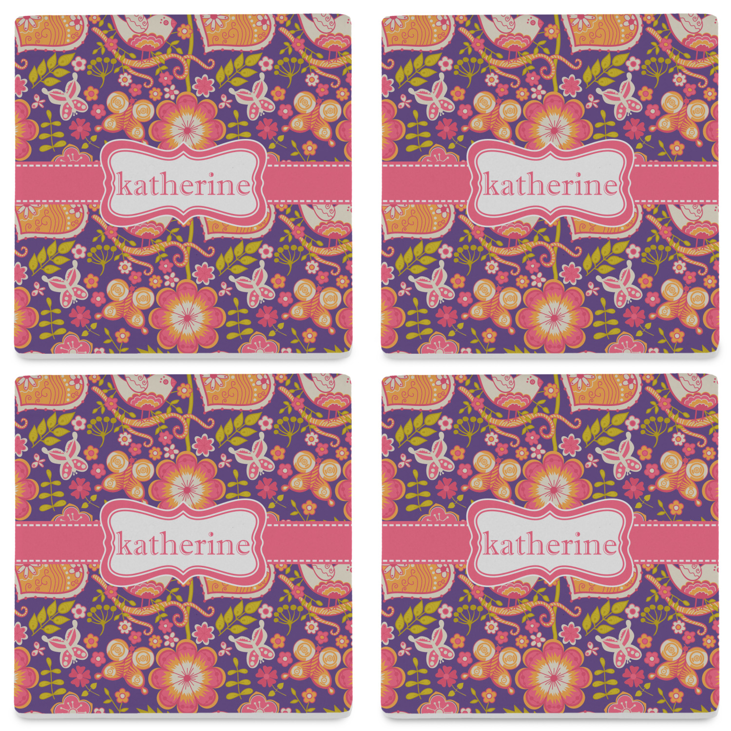 By default, the 4 coasters all have the same design on them, however, you can change that and have a different design on each one of the 4 coasters. The choice is yours.